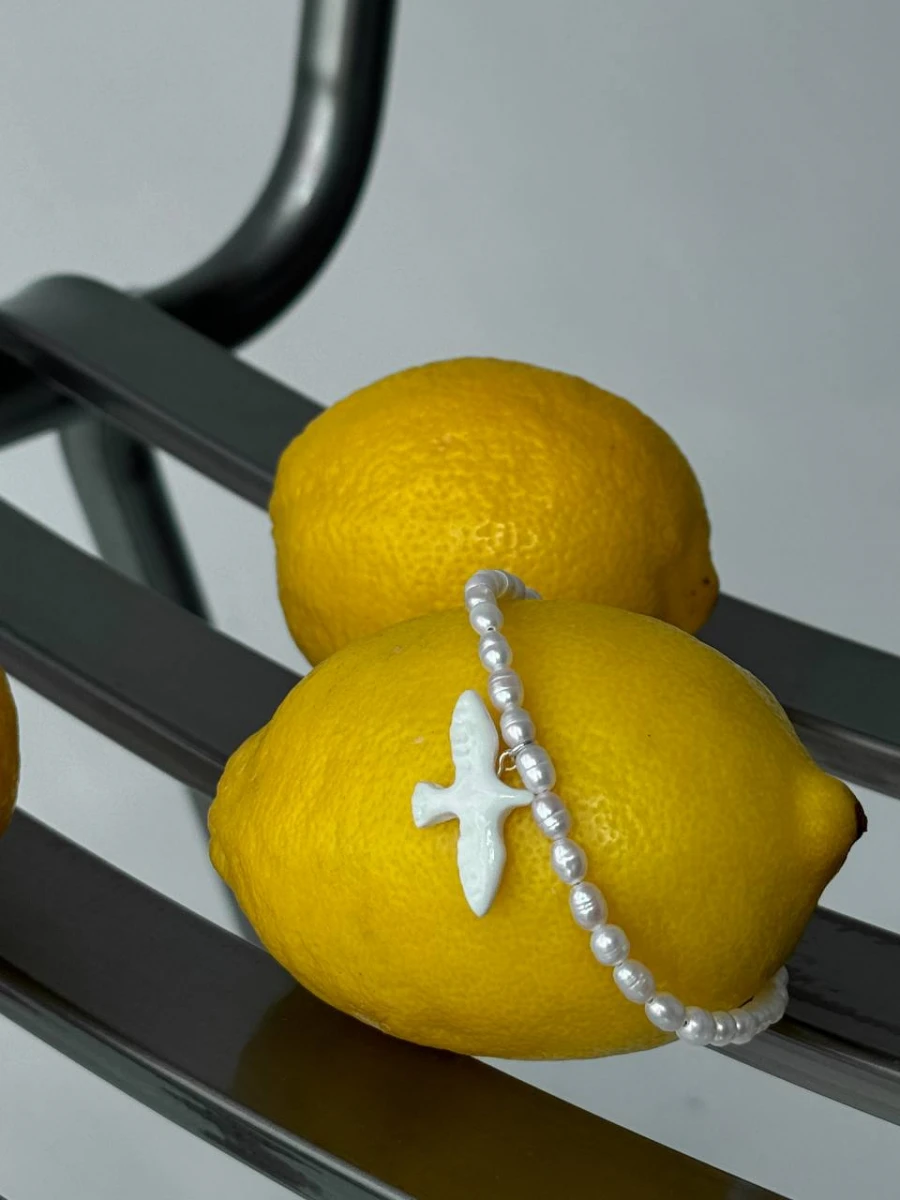 Анклет "Горлиця" - це вишукана ювелірна прикраса, виготовлена з високоякісних матеріалів: срібла, Високоякісних перлів та полімерної глини. Цей витончений аксесуар стане чудовим доповненням до будь-якого образу, додаючи йому елегантності та ніжності.