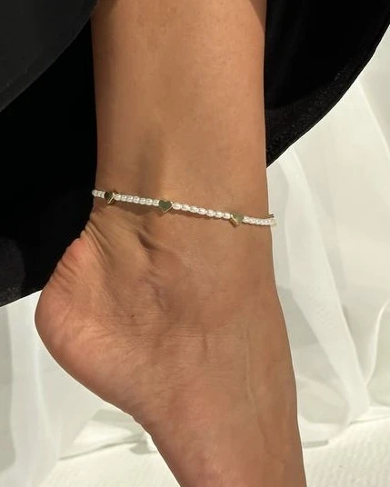Анклет "Harmony Love" - виготовлений вручну з використанням штучних перлів та сердець з латуні, покритих позолотою, він додає ніжності та благородства вашому образу.