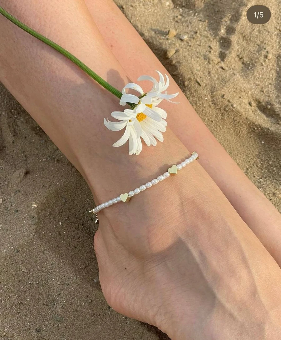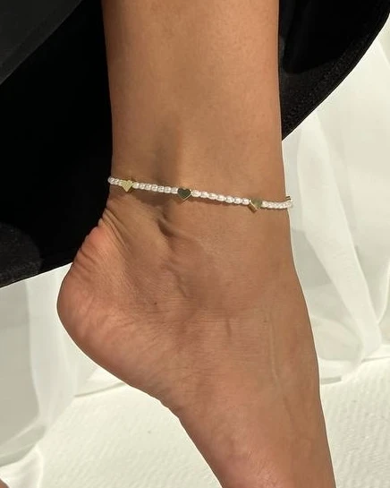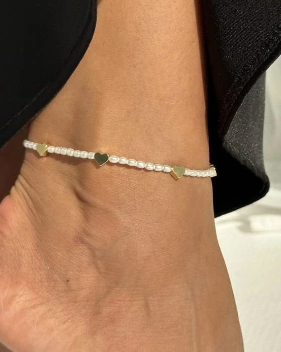 Перли та серця з латуні додають цьому анклету вишуканості та романтичного шарму.
