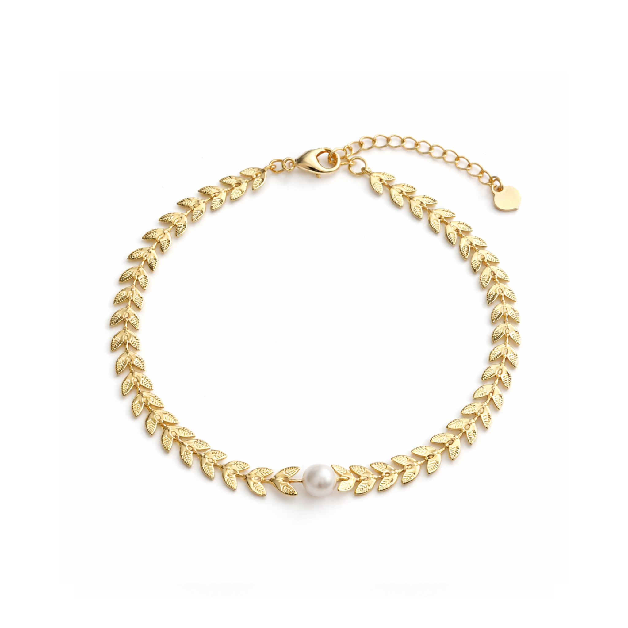 Анклет "Колос" - Цей витончений анклет виготовлений з високоякісного медсплаву та покритий сяйвом позолоти. Він делікатно прикрашає вашу щиколотку, підкреслюючи її елегантність. Перлина, що ніжно сяє, додає йому жіночності та вишуканості
