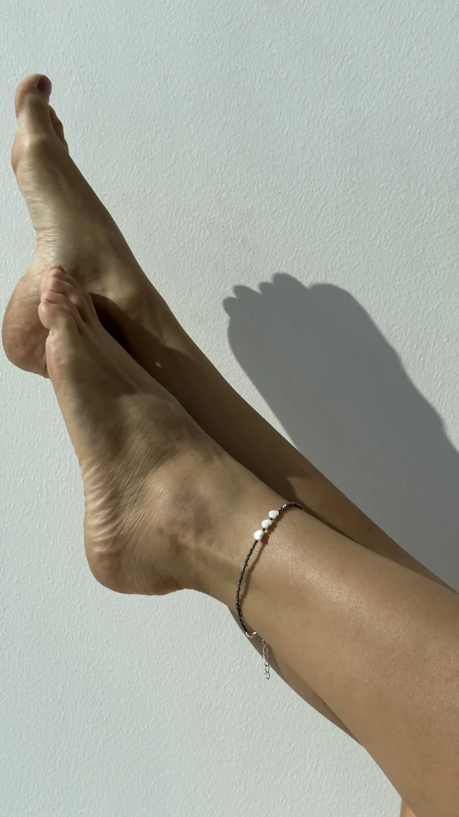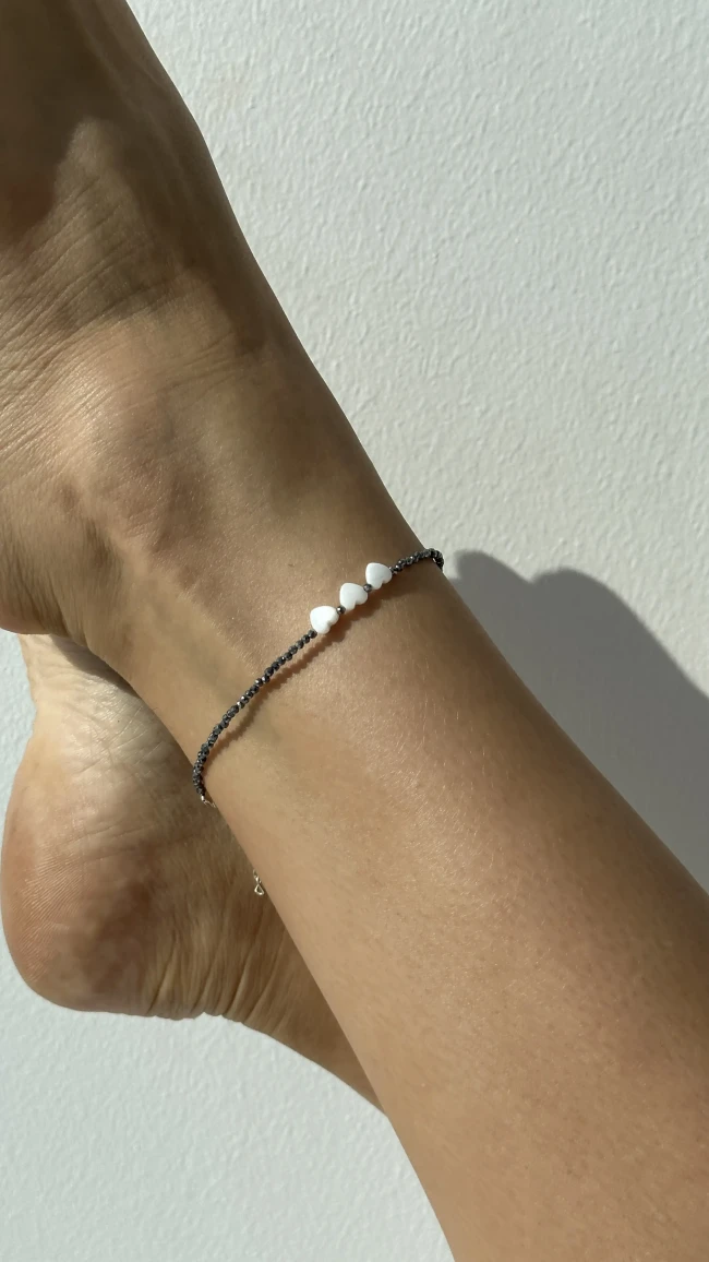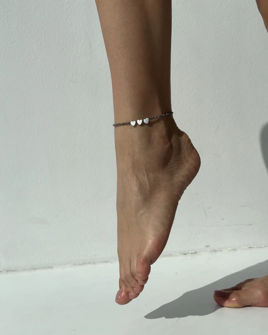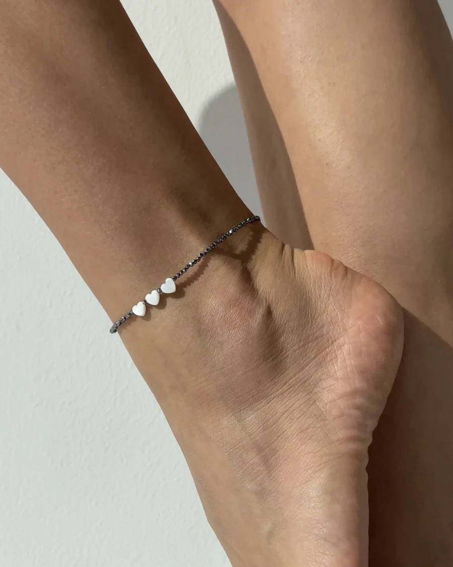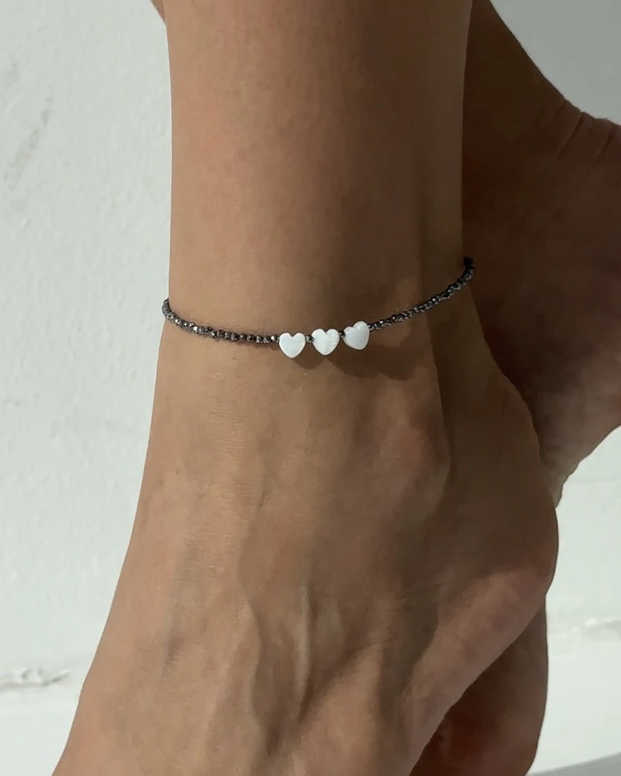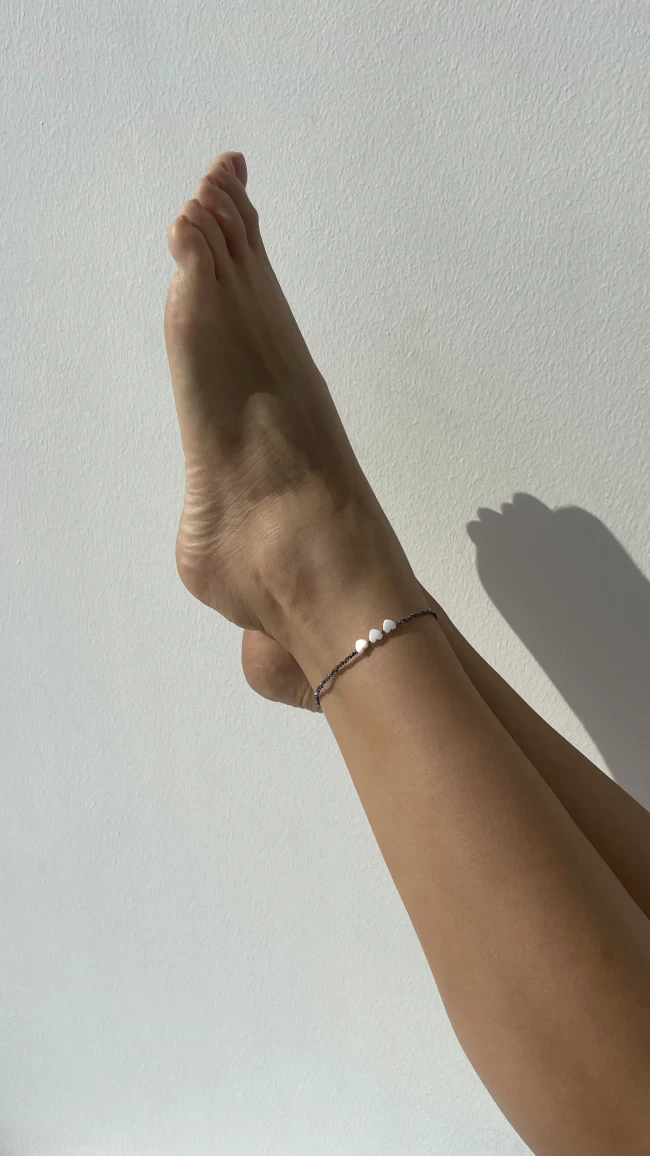 Анклет ручної роботи виготовлений з терагерцу та перламутровими серцями, які принесуть вам гармонію та ніжність в кожному кроці.