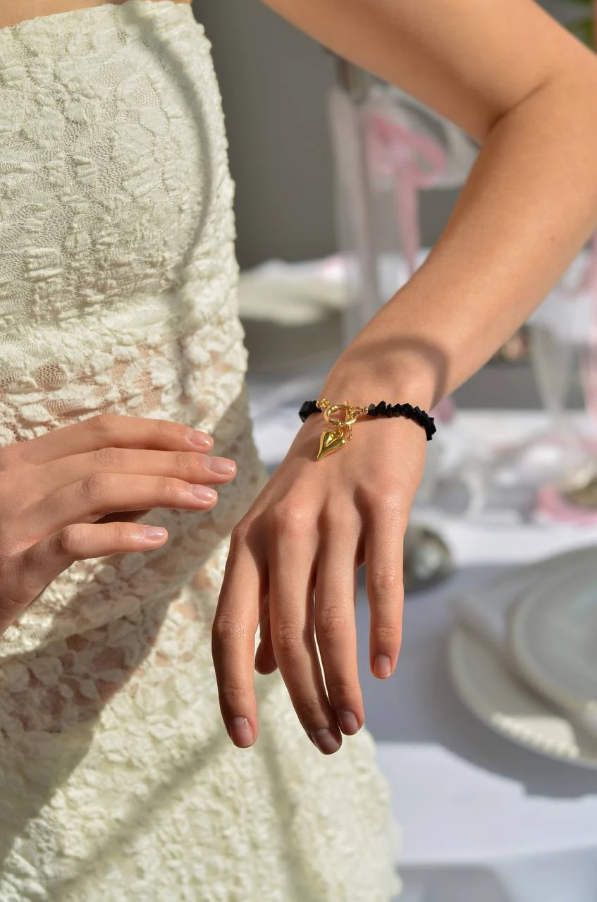Браслет "Black Crazy" – стильний аксесуар для яскравих образів. Виготовлений із ювелірного скла, медсплаву та покритий позолотою, він поєднує вишуканість і сучасний дизайн. Ідеальний вибір для тих, хто цінує елегантність з ноткою зухвалості.