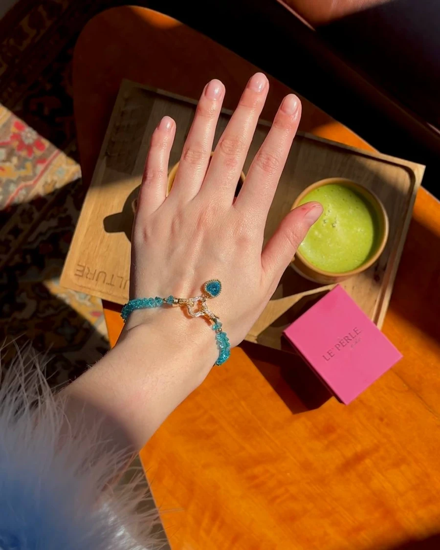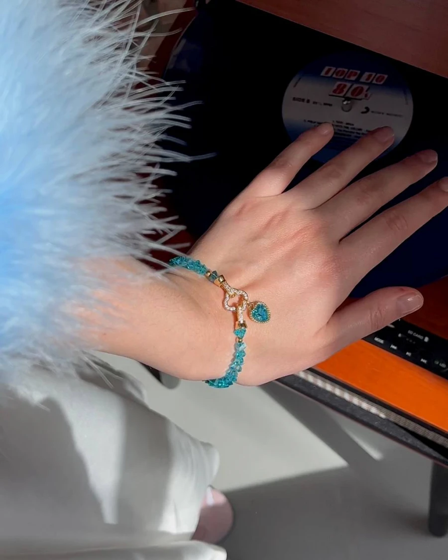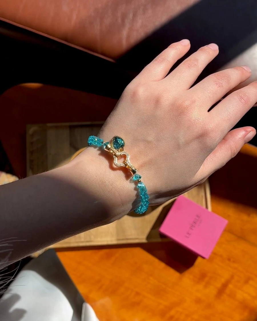 Браслет "Blue Clover" — витончений акцент у вашому стилі, виконаний з ювелірного скла та медсплаву з позолотою. Лаконічний дизайн доповнює елегантна тогл-застібка, що забезпечує зручність і надійність. Ідеальний вибір для тих, хто цінує мінімалізм із ноткою вишуканості.