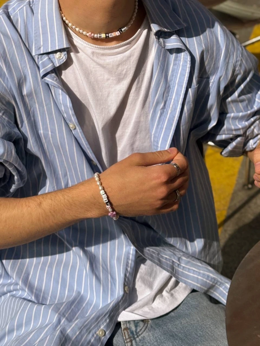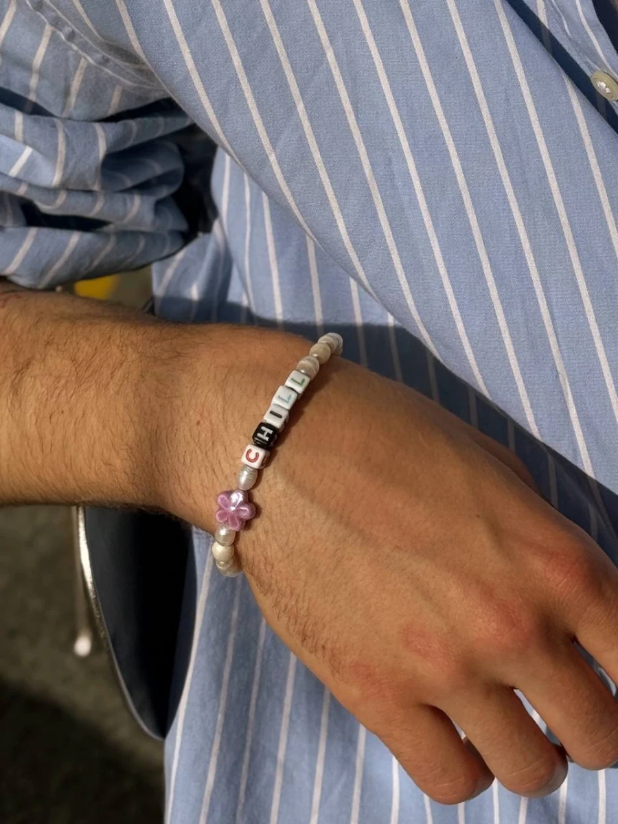 Браслет "Chill" — стильна upcycle-прикраса, створена з любов’ю до природи й індивідуальності. Неідеальні еко-перли поєднані з позолоченим медсплавом, а зручна застібка-карабін з подовженням на 5 см дозволяє ідеально підігнати розмір. Унікальність у деталях — кожен браслет неповторний