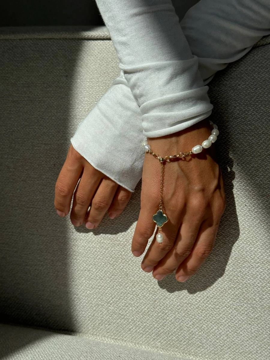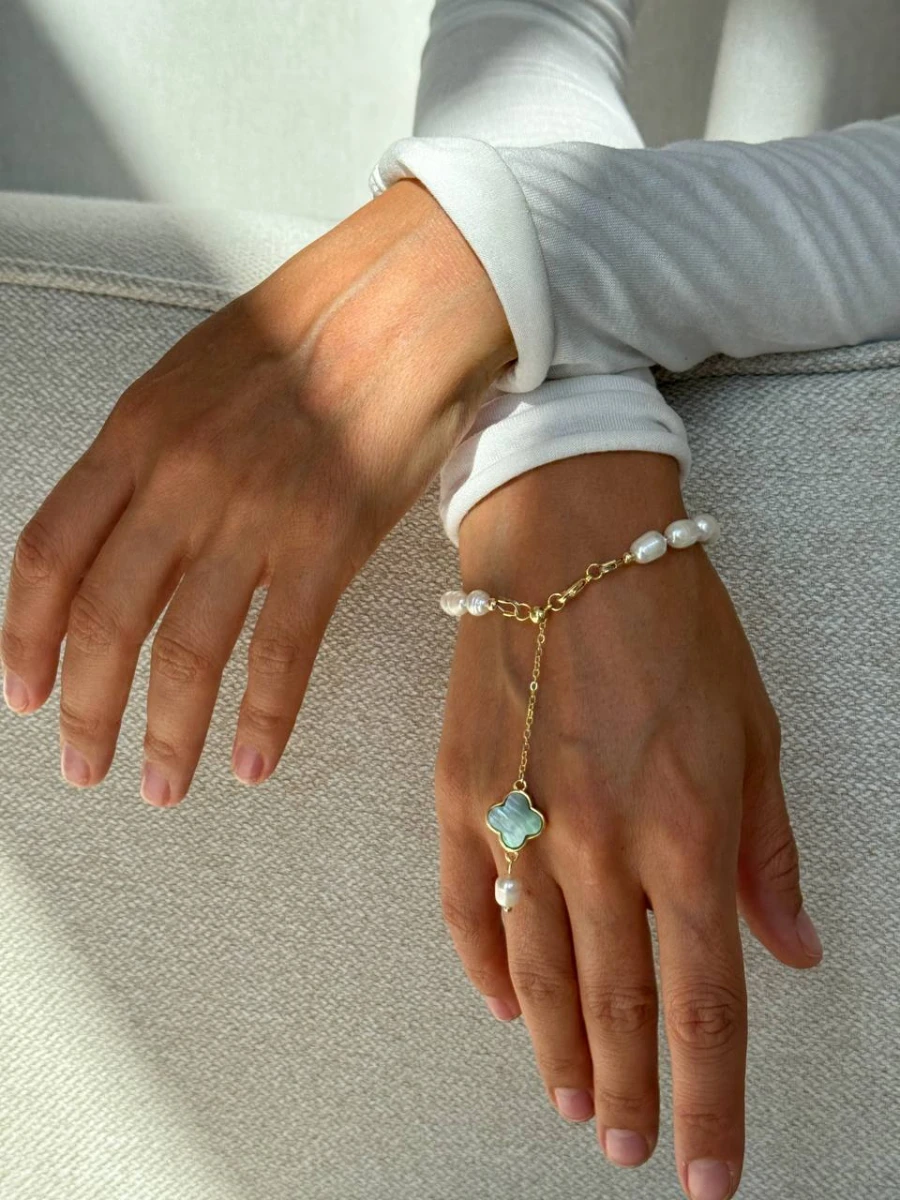 Відчуйте розкіш на своєму зап'ясті з нашим вишуканим браслетом, створеним з найтонших Високоякісних перлин, мерехтливого перламутру та благородної позолоти. Кожна перлина - це шедевр природи, що випромінює неповторне сяйво. Доповнений елегантним перламутром та шляхетною позолотою, цей браслет стане незамінним аксесуаром для особливих випадків та додасть нотку вишуканості вашому образу.