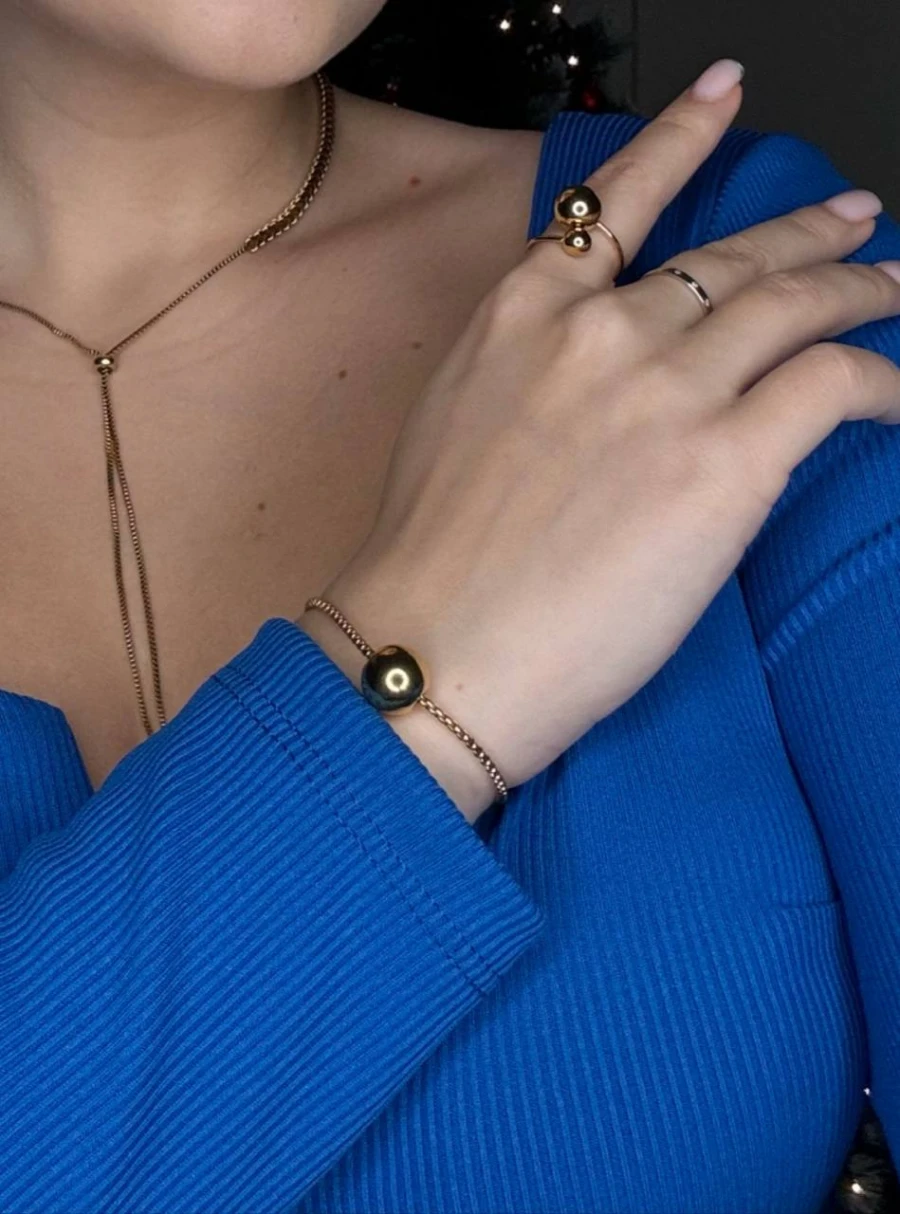Браслет "Echo" - це стильний та елегантний аксесуар, який ідеально підійде для будь-якого випадку. Він виготовлений з міцного та довговічного медсплаву, покритого позолотою.
