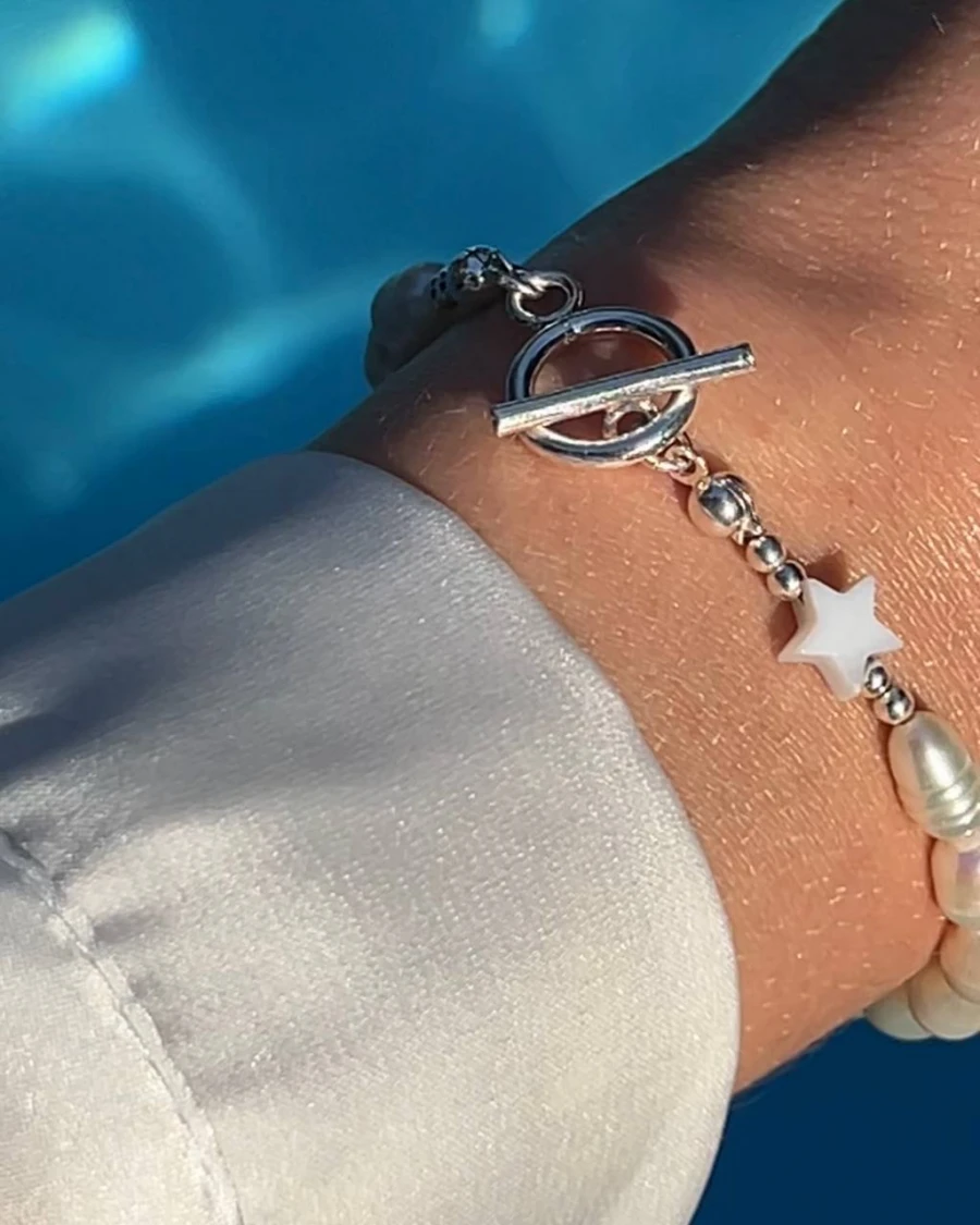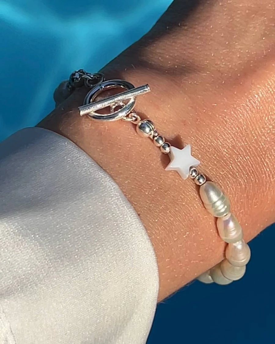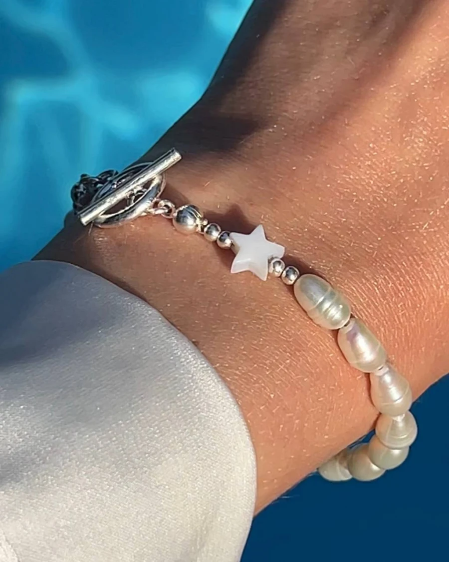 Браслет "Gentle Pearl" - це вишуканий та елегантний аксесуар, який стане доповненням до будь-якого образу. Виготовлений з перлів, перламутру та срібла, він підкреслить вашу жіночність та красу.