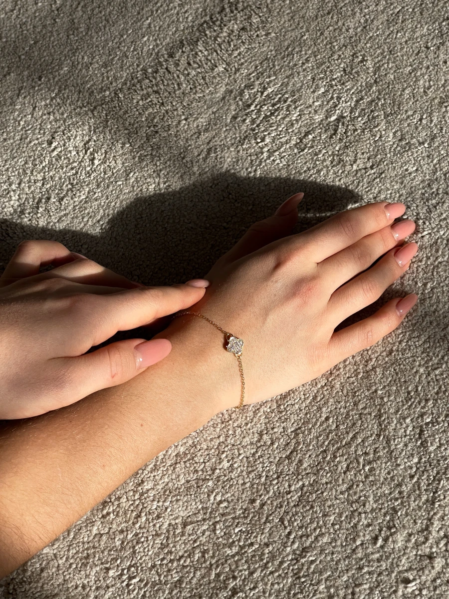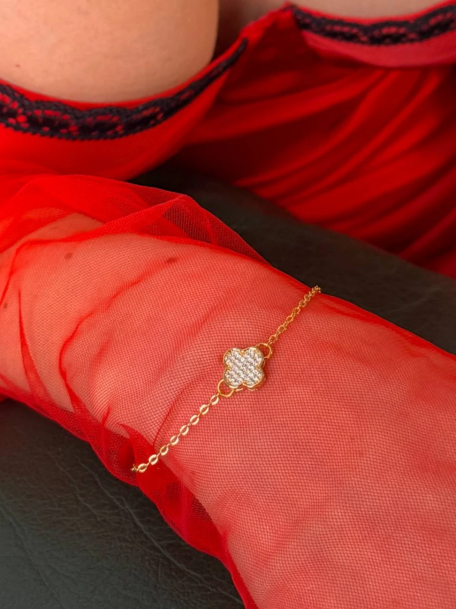 Браслет "Gold Diamond" — стильний аксесуар, виготовлений з медсплаву з позолотою та фіанітовою вставкою, що додає розкоші. Він оснащений надійною застібкою-карабіном і має подовжувач на 2 см для ідеальної посадки. Цей браслет — елегантний вибір для будь-якої нагоди.