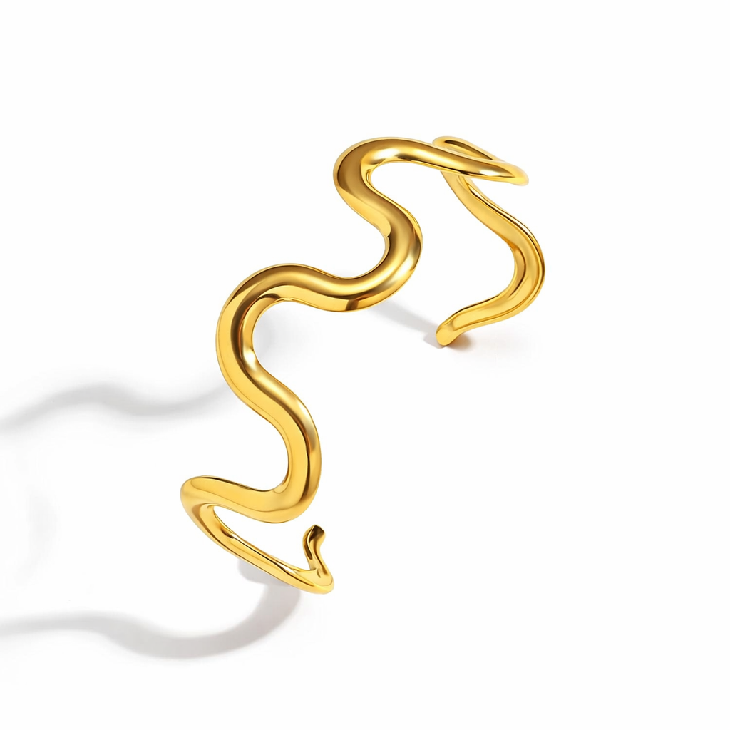 Елегантний браслет "Gold Wave" виконаний з якісного медичного сплаву з покриттям позолоти. Його витончений дизайн та блискучий золотий відтінок підкреслять вашу вишуканість і стиль. Ідеальний аксесуар для щоденного носіння або особливих моментів.
