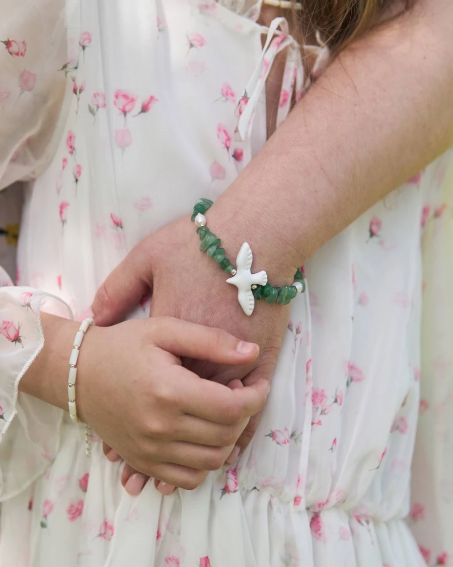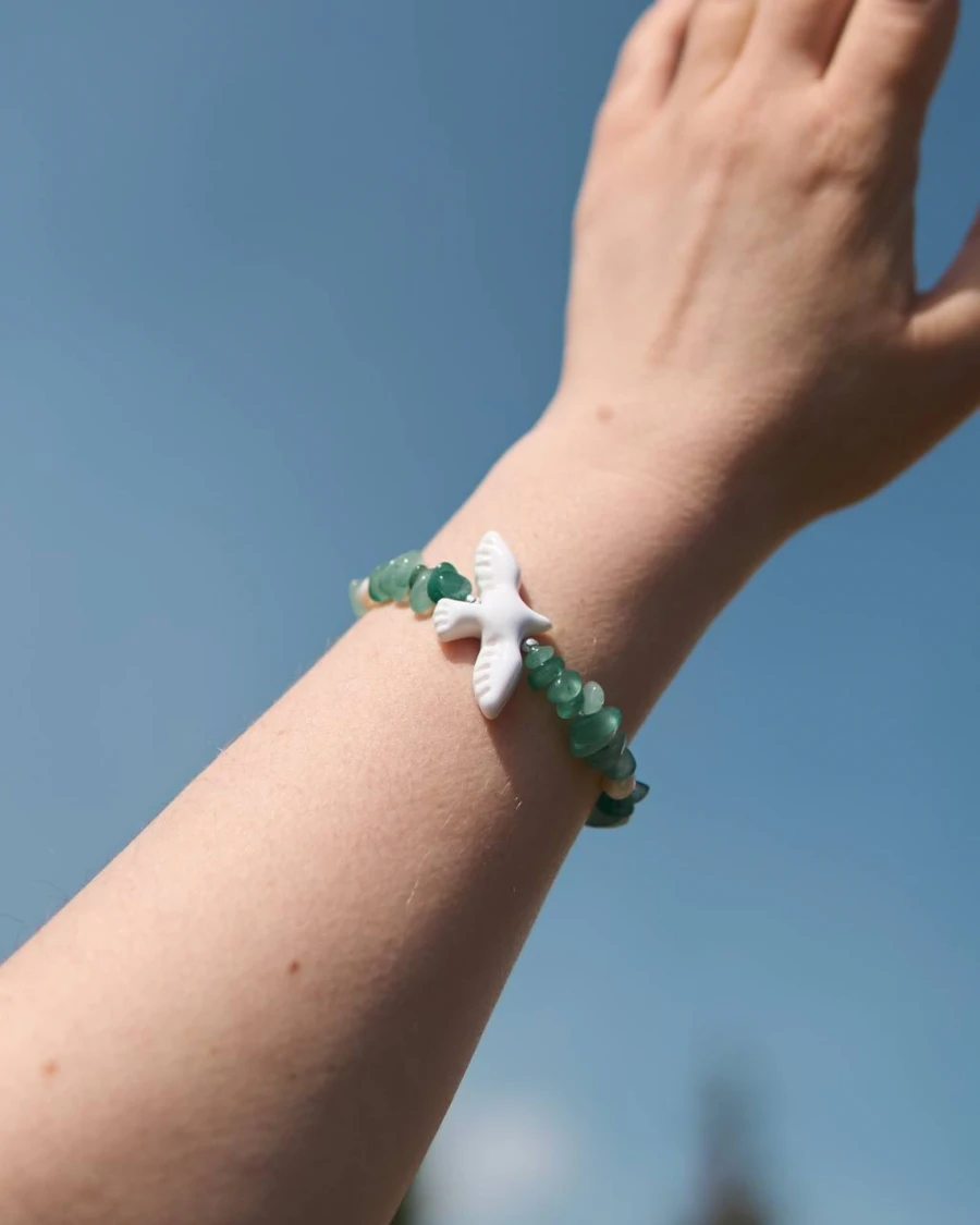 Браслет "Горлиця Надії"-неймовірно вишуканий та стильний браслет,який неодмінно стане вашим улюбленим.Виготовлено з перлів,нефриту та прекрашено ніжною горлицею яка виготовлена з полімерної глини.