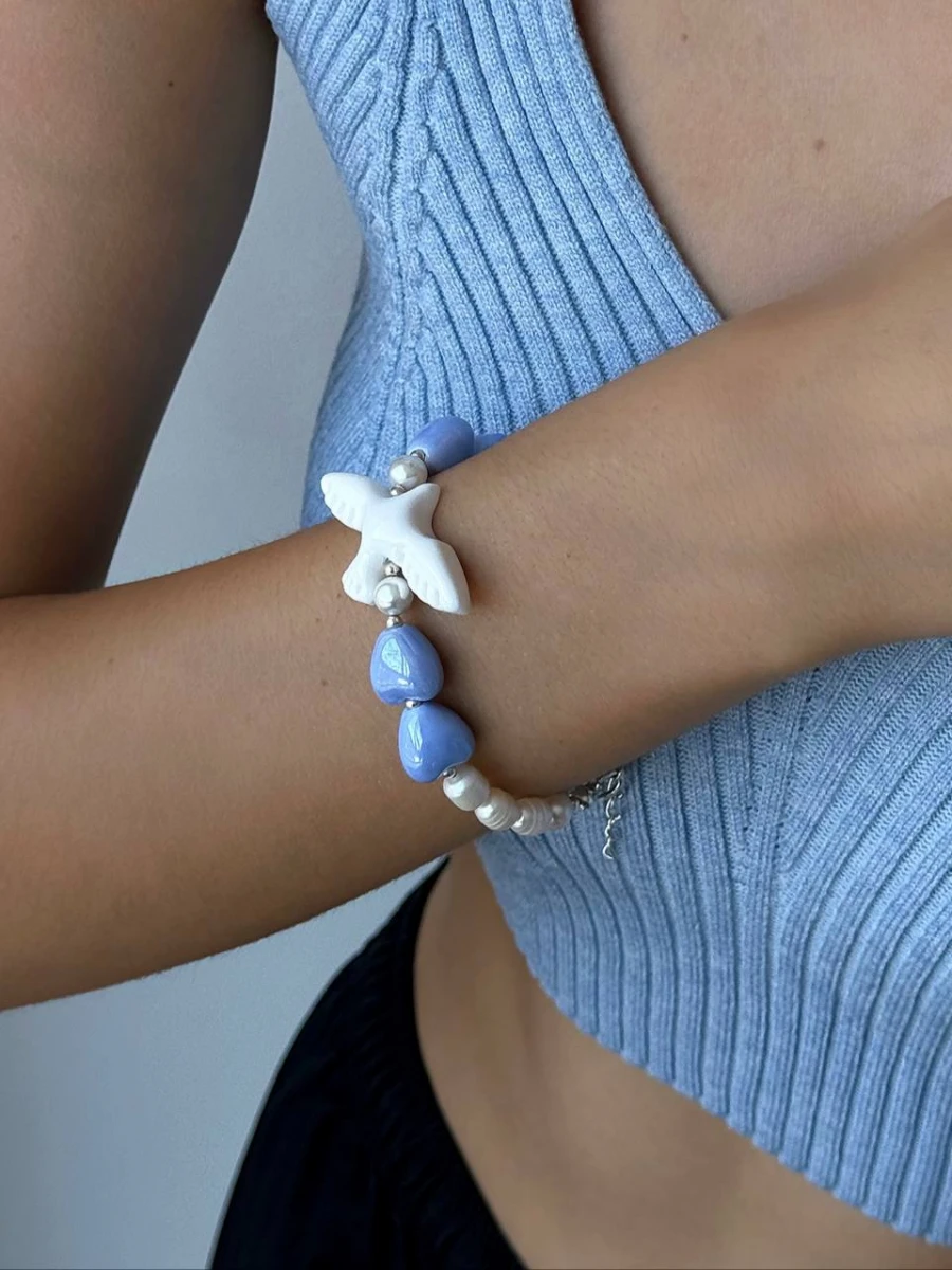 Унікальний браслет, створений з поєднання Високоякісних перлин, які надають йому природної краси, витончених керамічних сердець, що символізують любов та ніжність, та яскравих елементів з полімерної глини, які додають особливої індивідуальності. Цей браслет стане чудовим доповненням до будь-якого образу, підкресливши вашу жіночність та вишуканий смак