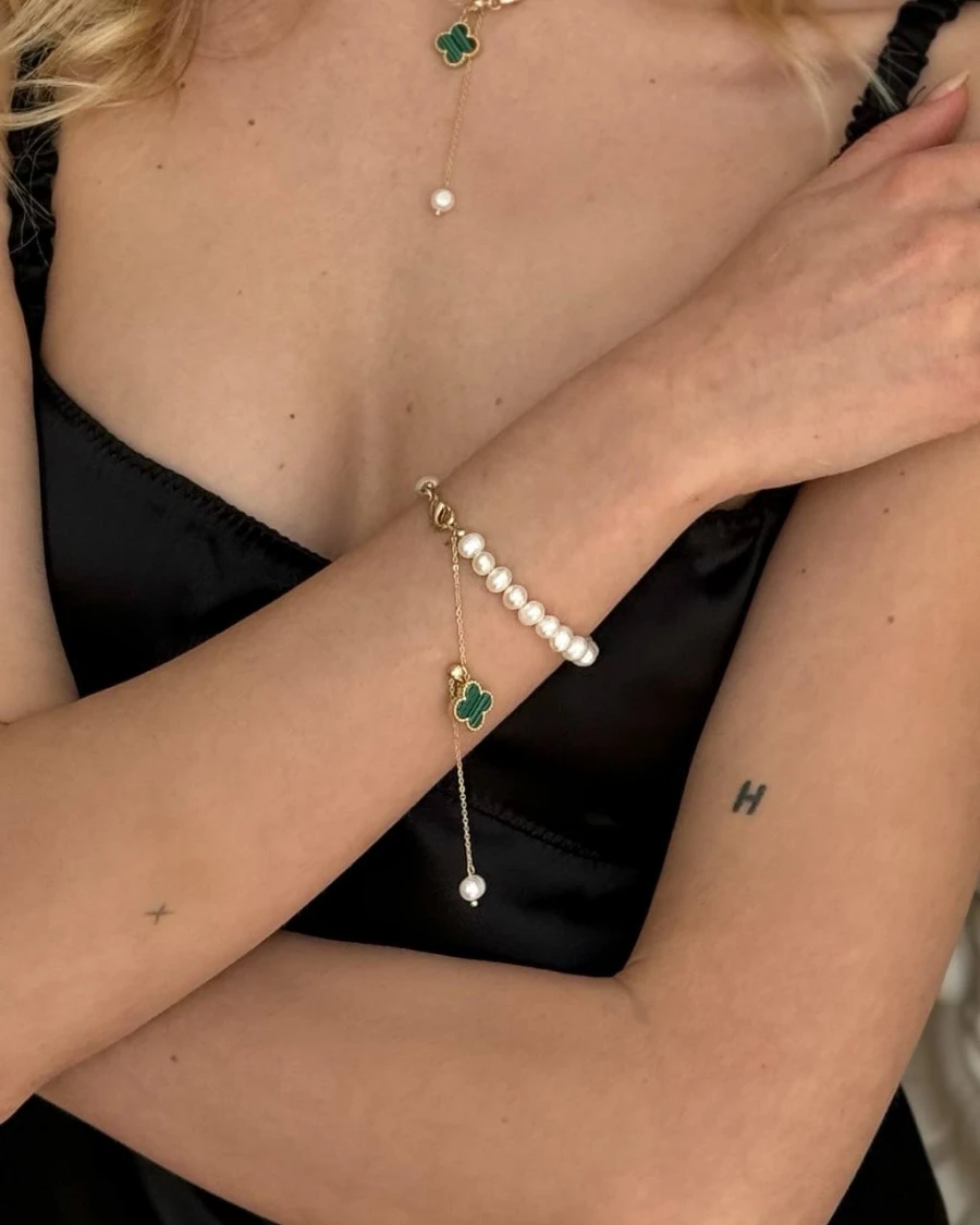 Елегантний та витончений браслет "Green Lilly" - це чудовий аксесуар, який підкреслить вашу красу та індивідуальність. Браслет "Green Lilly" - це ідеальний подарунок для будь-якої жінки, яка цінує красу та стиль.