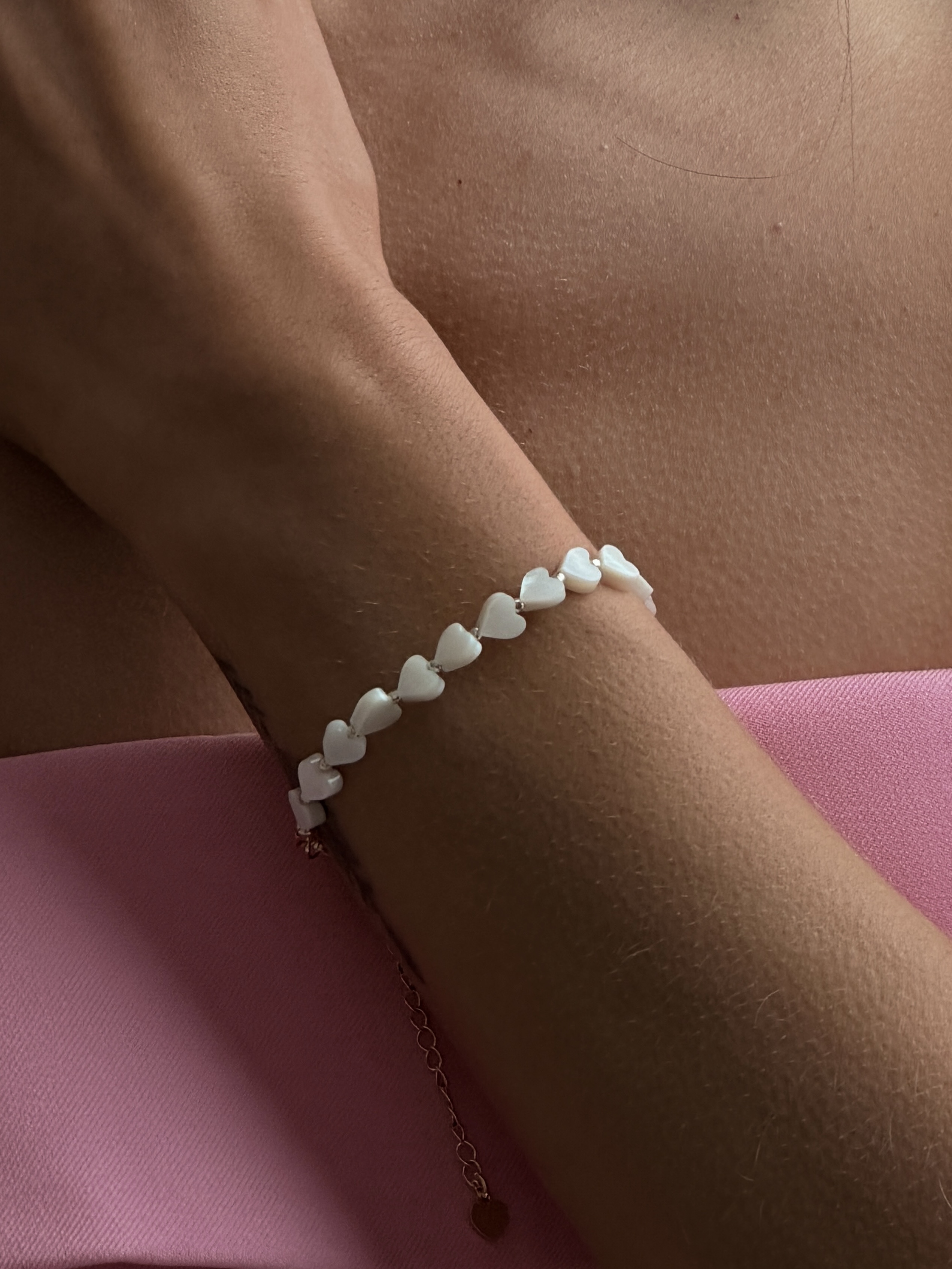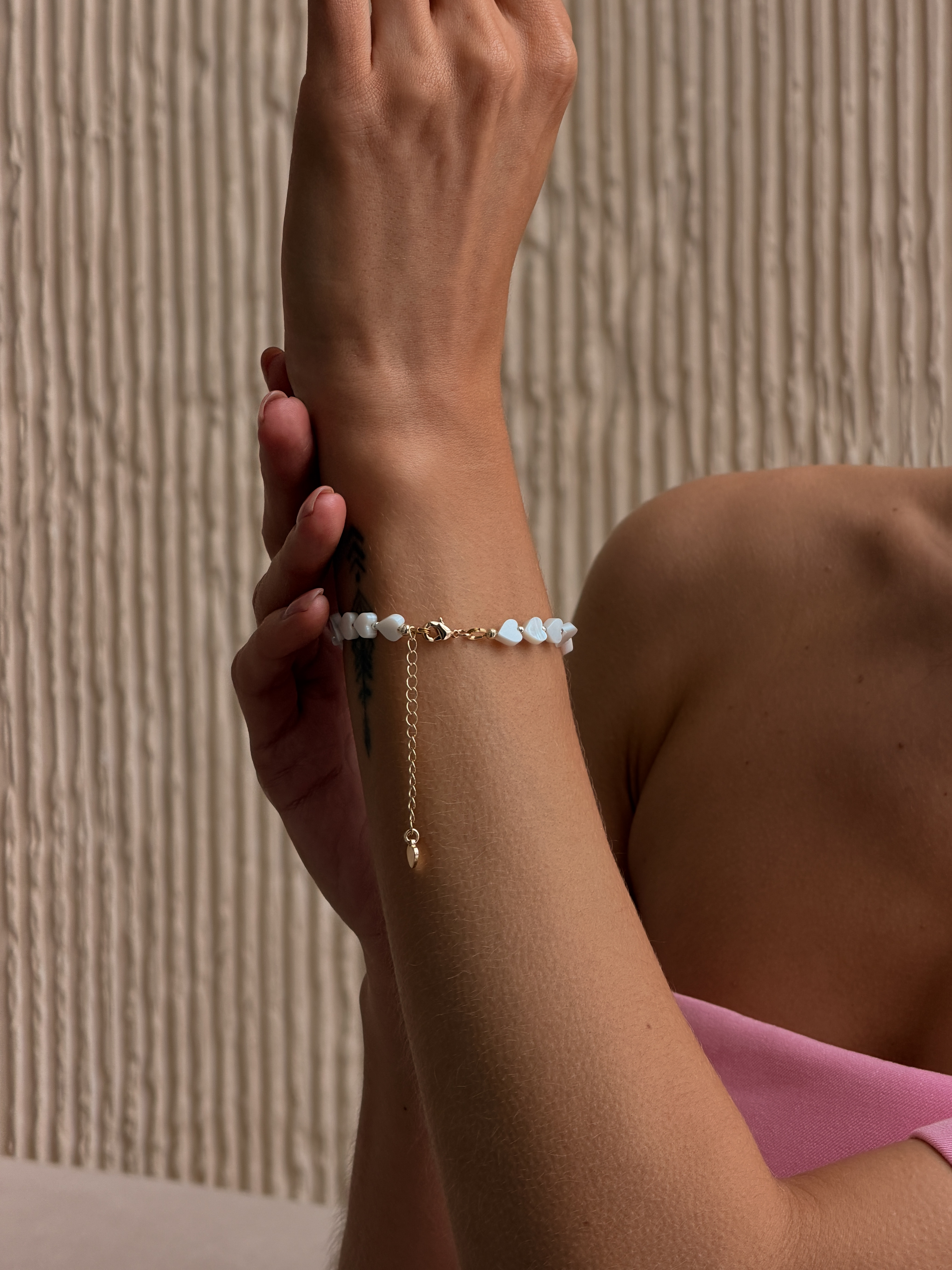 Браслет "Lovely Heart" - це чудовий подарунок для коханої, який підкреслить ваші почуття. Виготовлений з перламутру, медсплаву, позолоти та японського бісеру, він стане улюбленим ювелірним виробом на будь-який випадок.