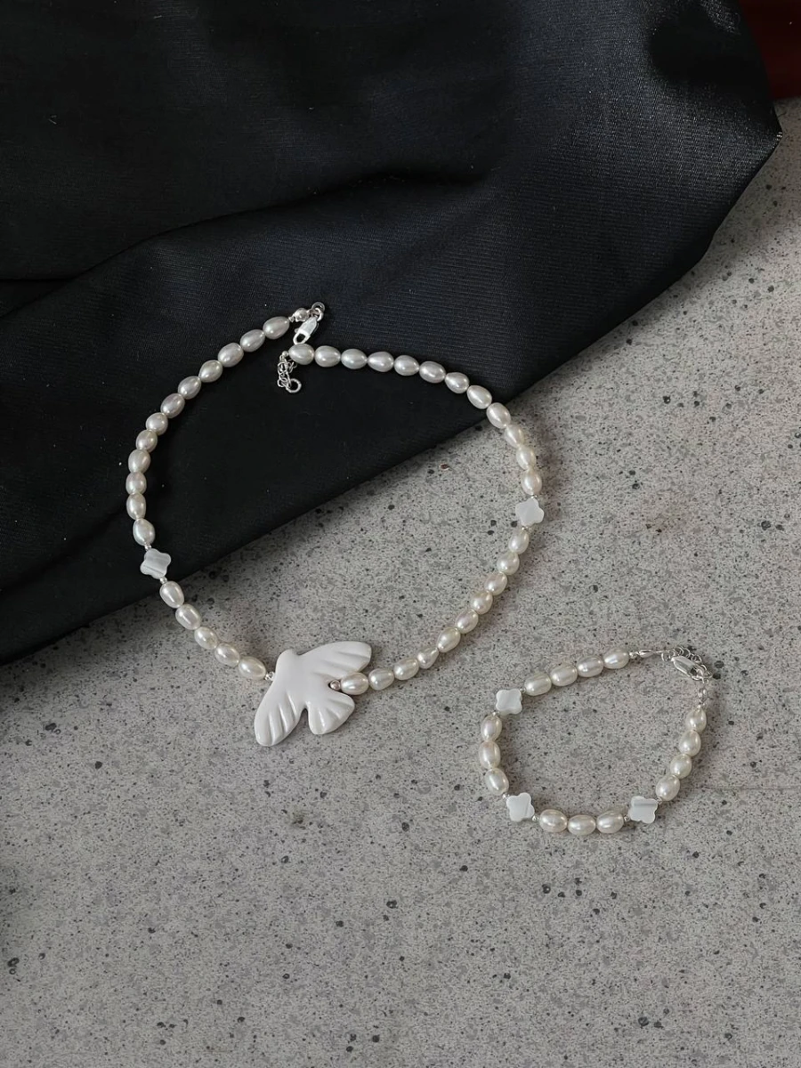 Вишуканий браслет, який поєднує в собі класичну елегантність перлів та сучасну оригінальність. Виготовлений з перлин найвищої якості, кожна з яких сяє неповторним перламутром, браслет доповнений ексклюзивними підвісками у вигляді пташок, виготовлених вручну з високоякісної полімерної глини. Кожна пташка – це справжній витвір мистецтва, з детально проробленим оперенням та виразними очима. Цей унікальний аксесуар стане чудовим доповненням до вашого образу, додавши йому нотку вишуканості та індивідуальності.