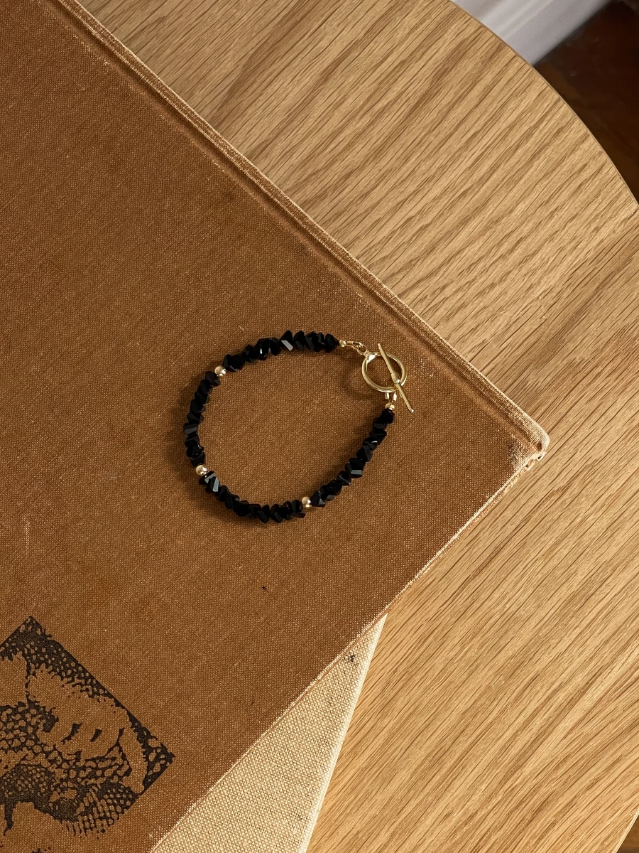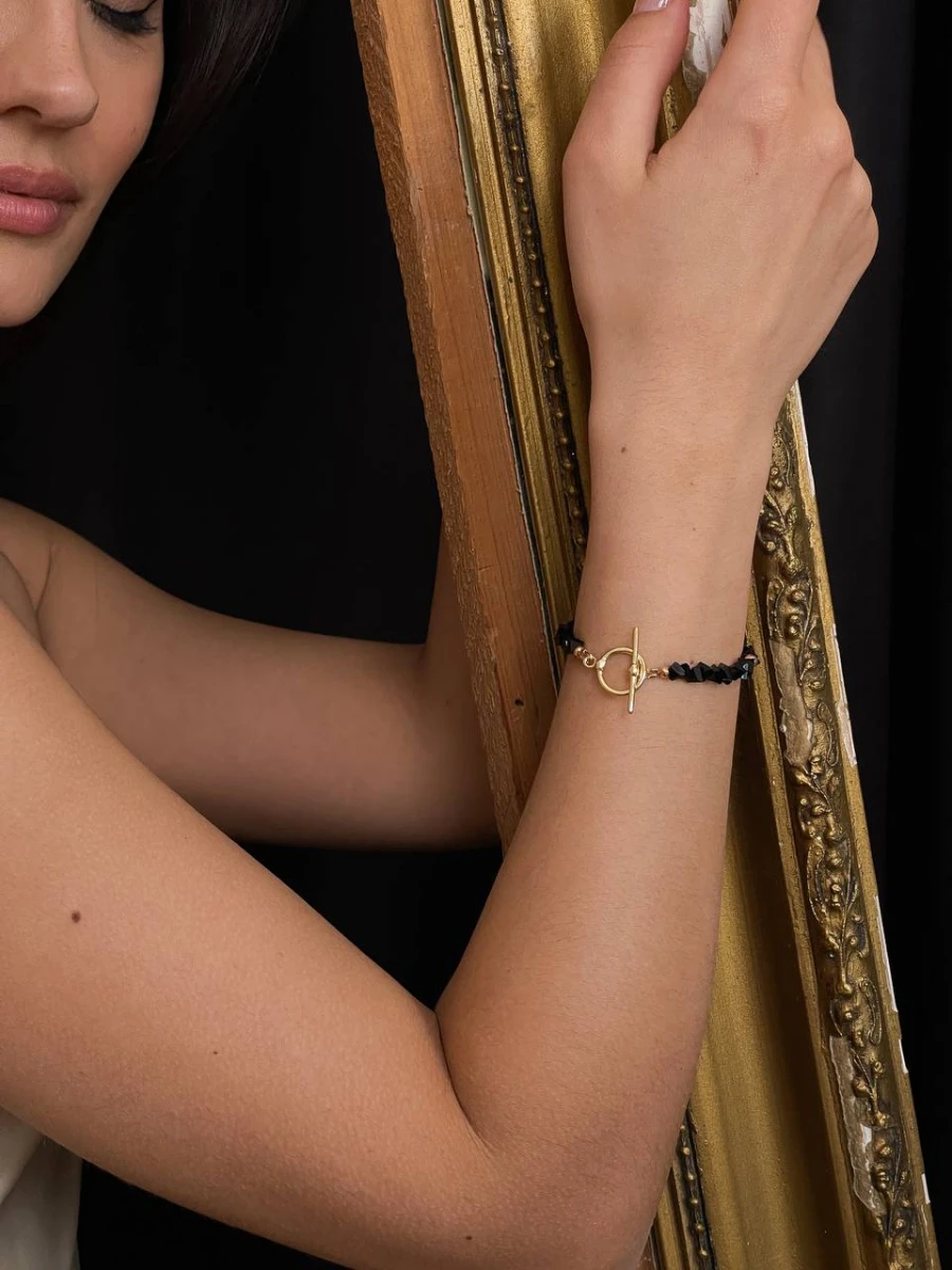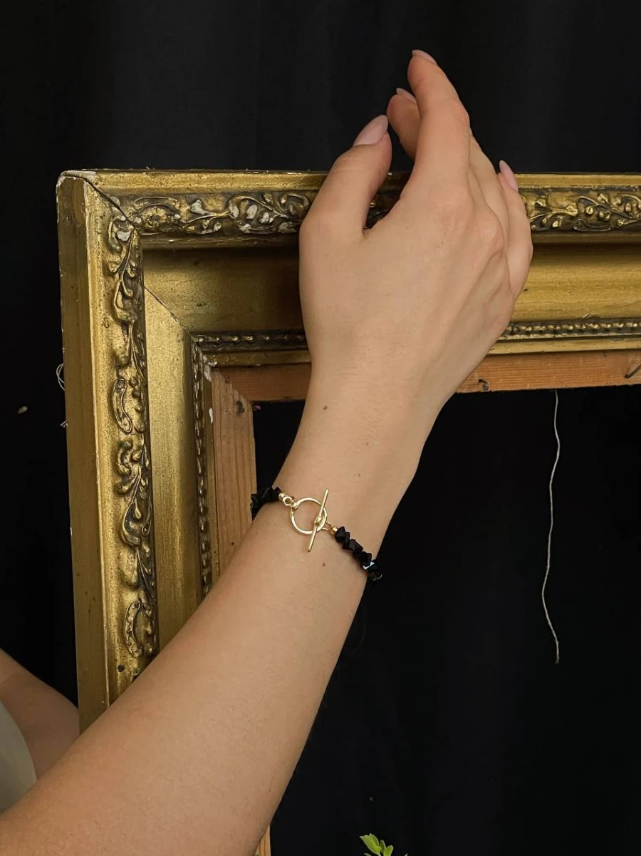 Браслет "Night" — стильний та витончений аксесуар, виготовлений з ювелірного скла та медсплаву з позолотою. Застібка тогл додає елегантності та зручності, а відсутність подовжувача робить його ідеальним для ідеальної посадки на зап’ясті. Створений для тих, хто любить розкіш у кожній деталі.