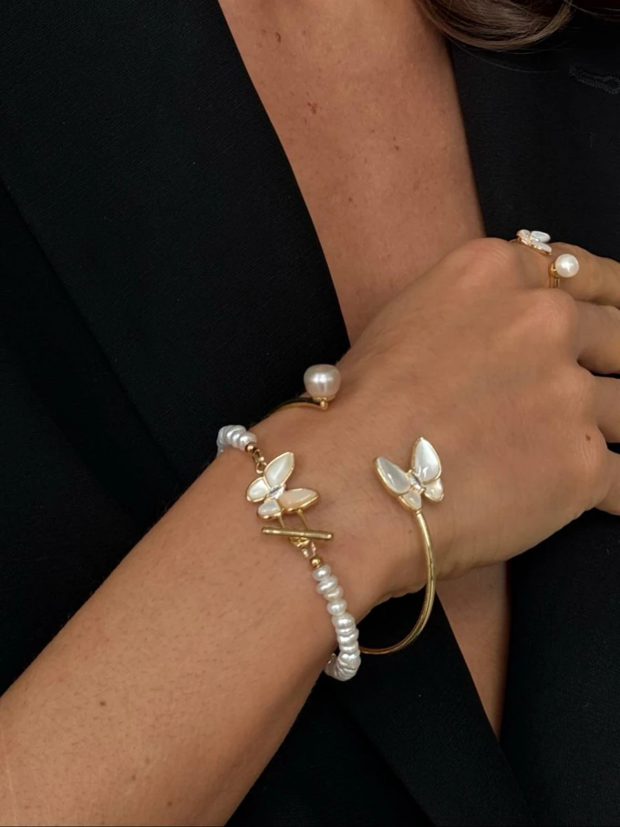 Браслет "Pearl Butterfly" - це про витонченість та красу. високоякісні перли кукурудзи, що переливаються ніжним блиском, додають таємничості та шарму.