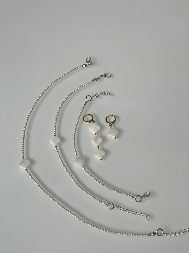 Браслет із перламутру "Pearl Clover" - це чарівна прикраса, створена з любов'ю та майстерністю. Натуральний перламутр, що використовується в його виготовленні, приносить природну елегантність та загадковість у ваш образ.