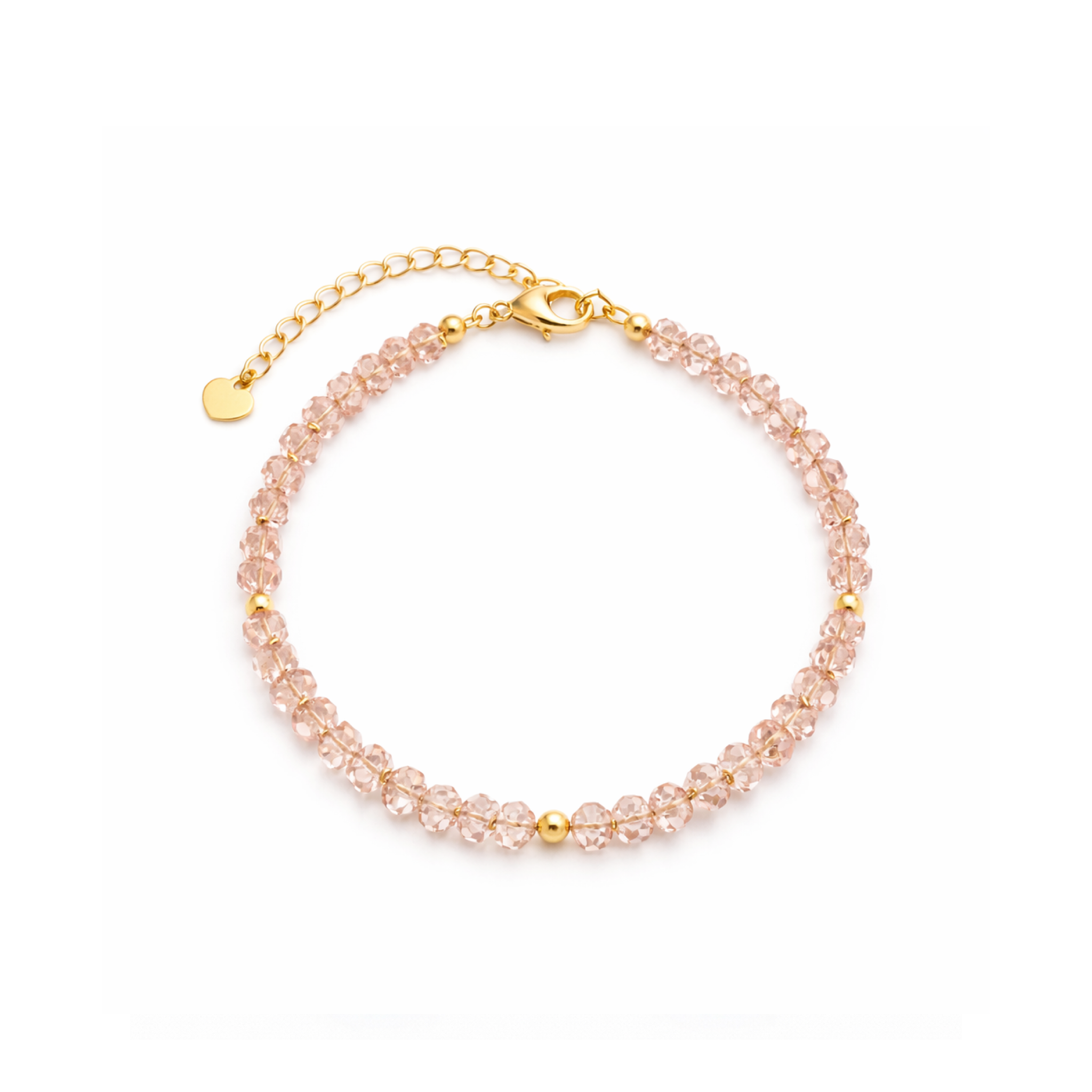 Браслет "Pink Vera" — ніжний акцент до вашого образу, виконаний із ювелірного скла, медсплаву та покритий позолотою. Легкий, витончений і зручний у носінні завдяки карабін-застібці та подовжувачу 5 см. Ідеальна посадка для будь-якого зап’ястя.