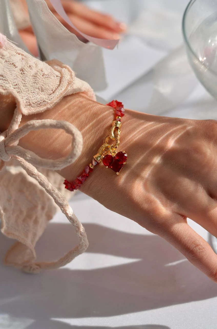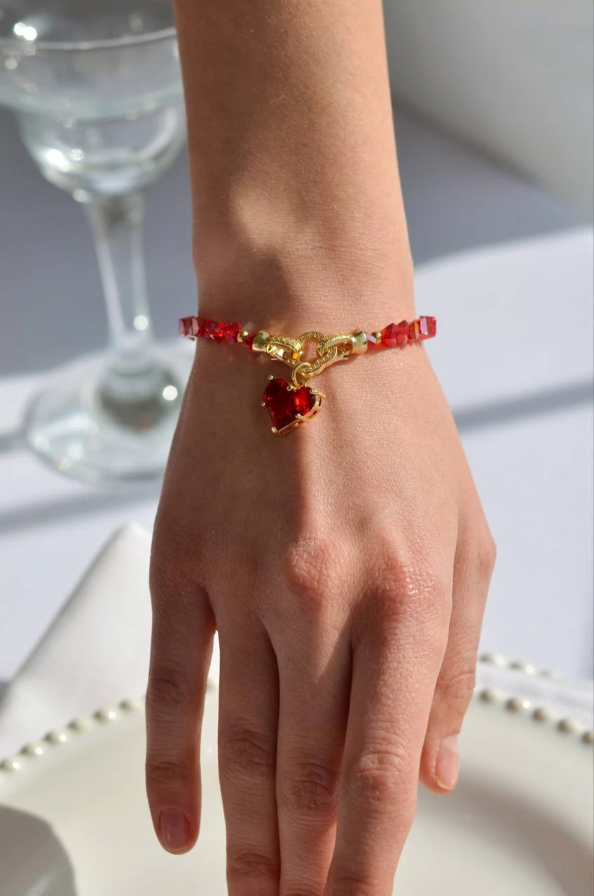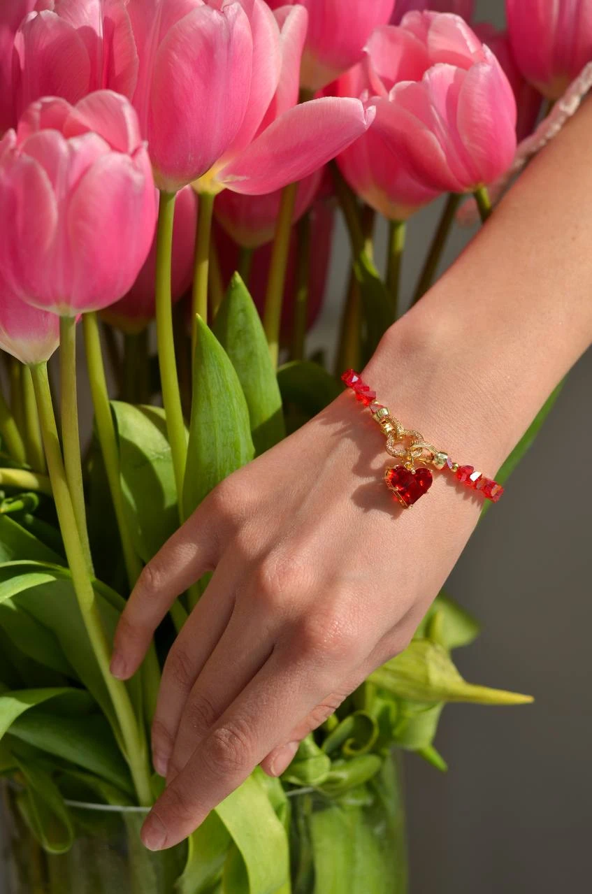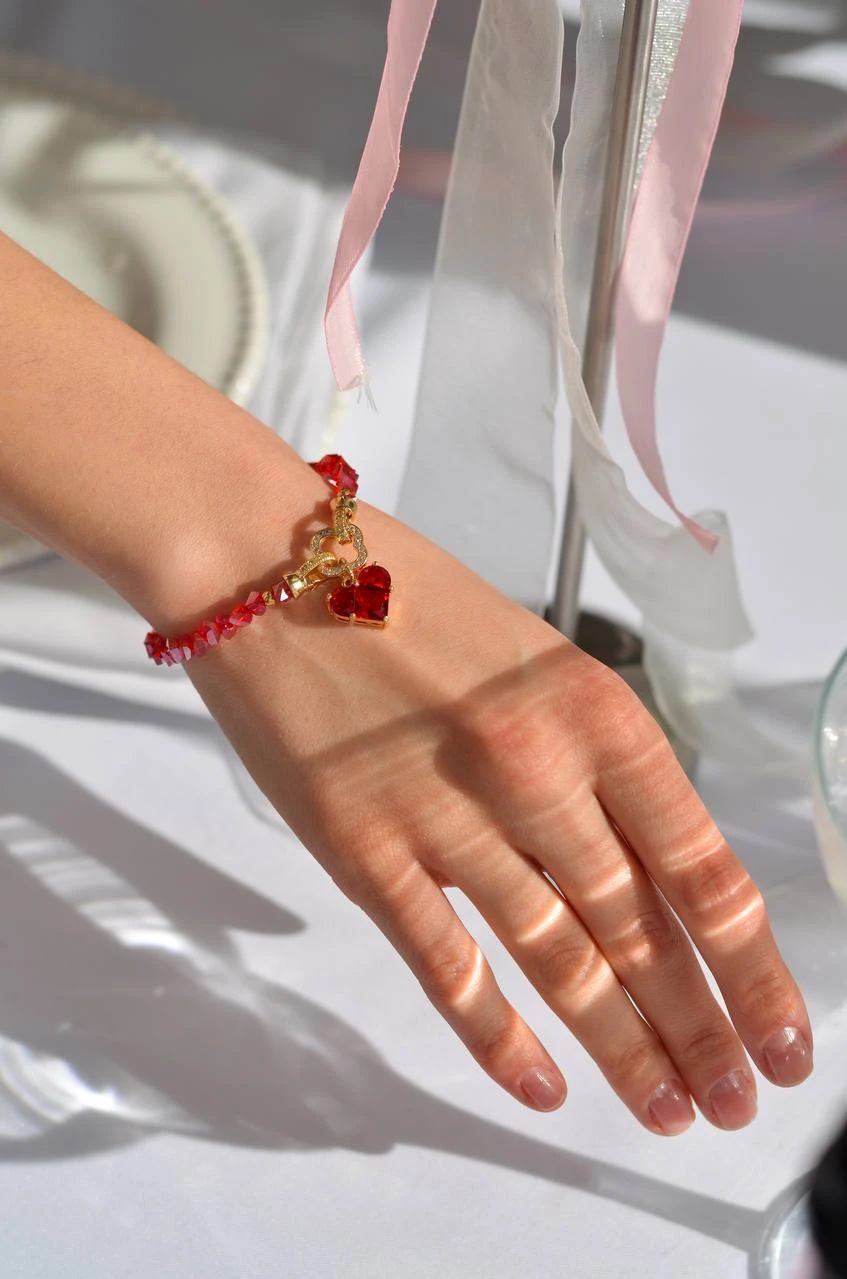 Браслет "Red Clover" — елегантна ювелірна прикраса, виконана з ювелірного скла, медсплаву та позолоти. Цей стильний аксесуар відзначається елегантним дизайном та застібкою тогл, без подовжувача. Червоні деталі надають йому особливої витонченості, роблячи його ідеальним доповненням до будь-якого образу.