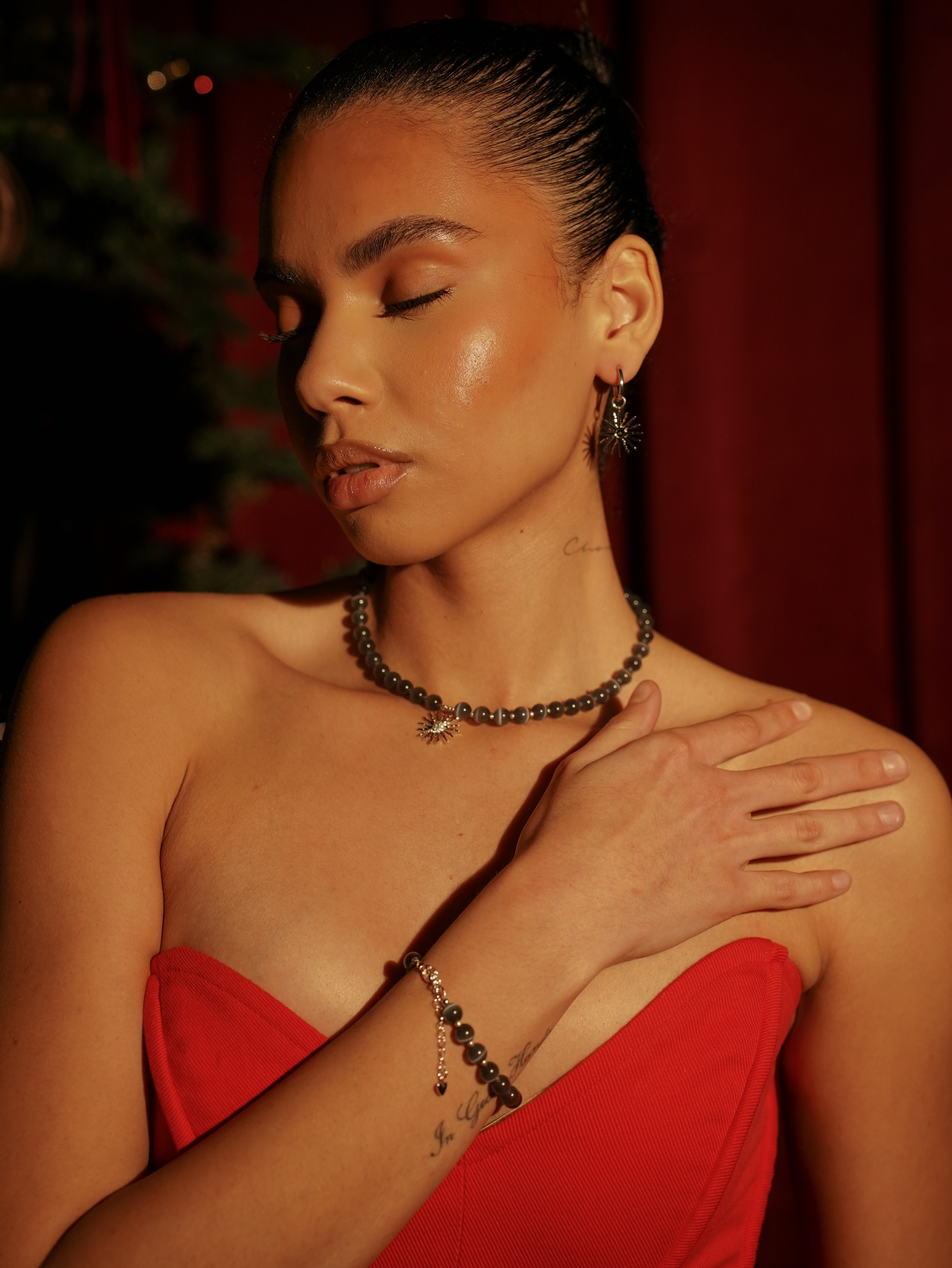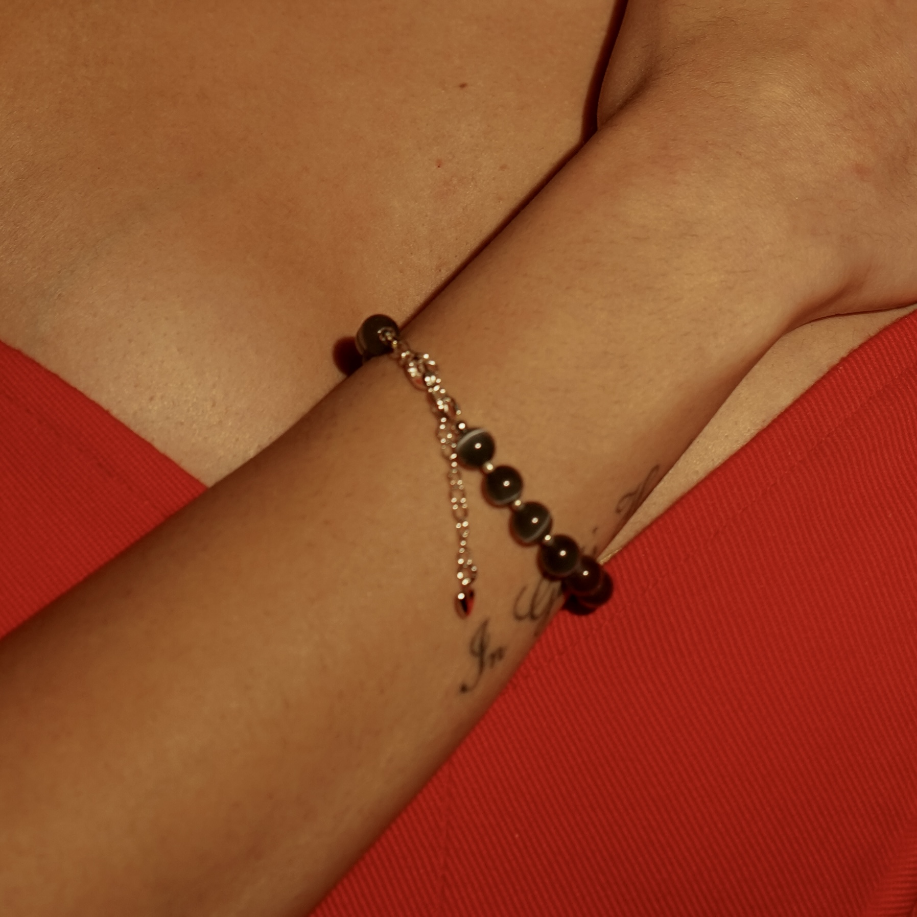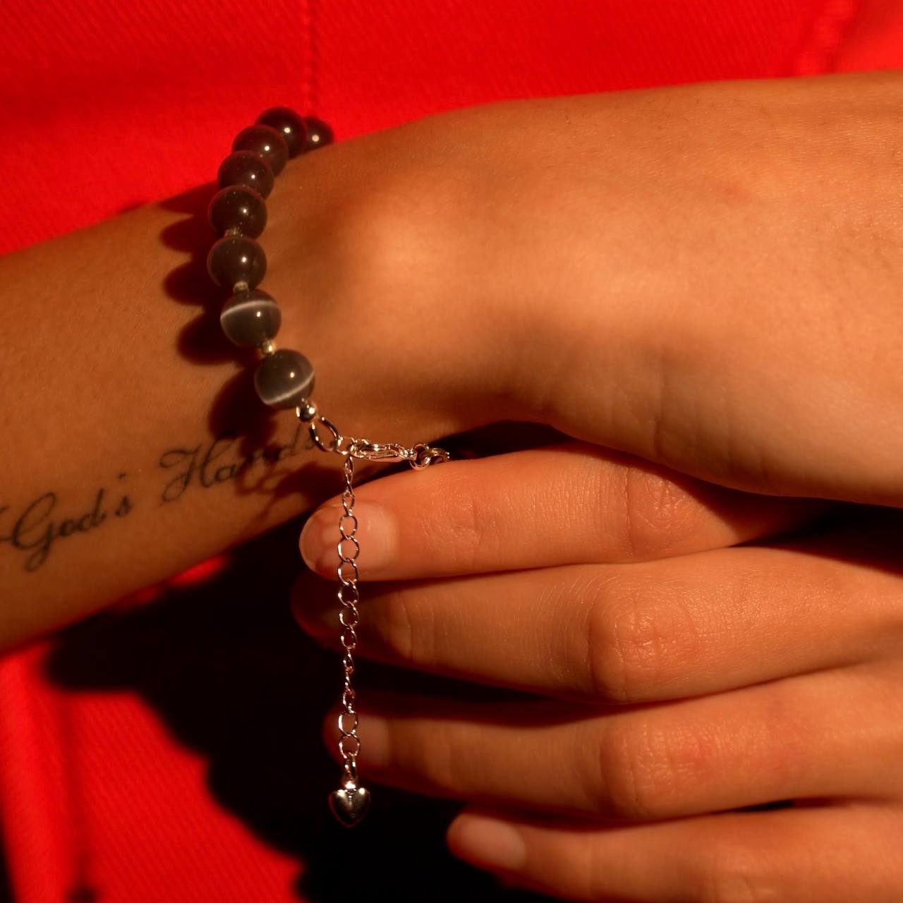 Елегантний браслет «Сяюче Різдво» — це вишукана прикраса з делікатним сяйвом та глибоким характером. Гладкі намистини каменю «котяче око» створюють ефект м’якого переливу світла, що символізує захист, інтуїцію та внутрішній баланс. Благородний темний відтінок каменю додає образу стриманої розкоші.