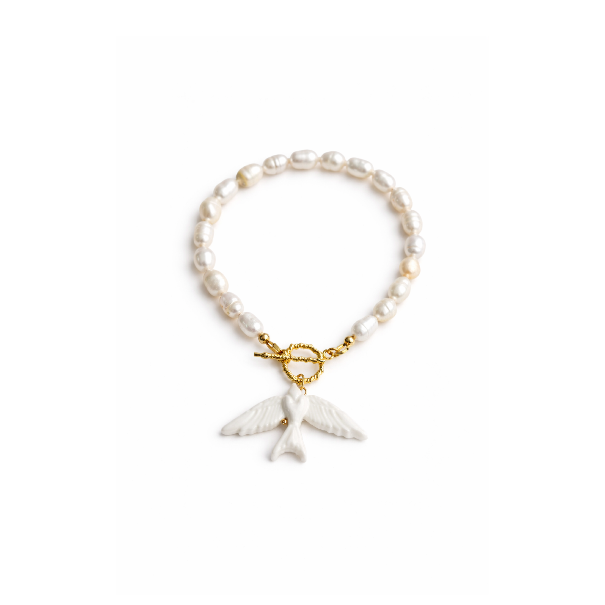 Браслет “Сокіл Eco” — стильна еко-прикраса з еко перлів та елементів із полімерної глини. Позолочене покриття додає елегантного блиску, а зручна застібка тогл забезпечує комфортне носіння. Модель без подовжувача — лаконічний дизайн для сучасного образу.