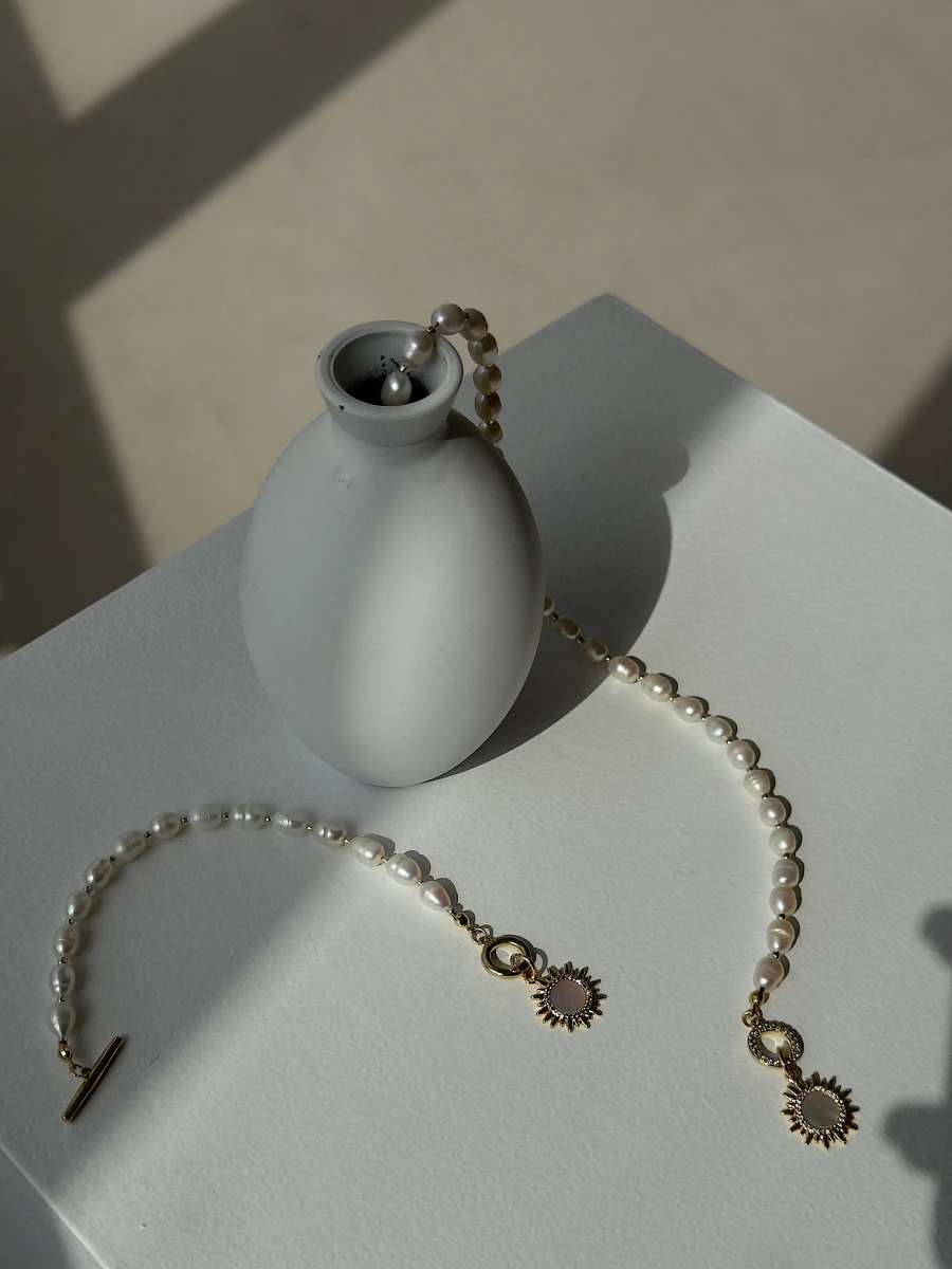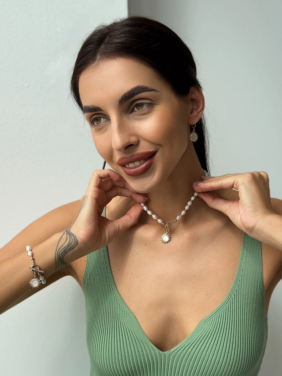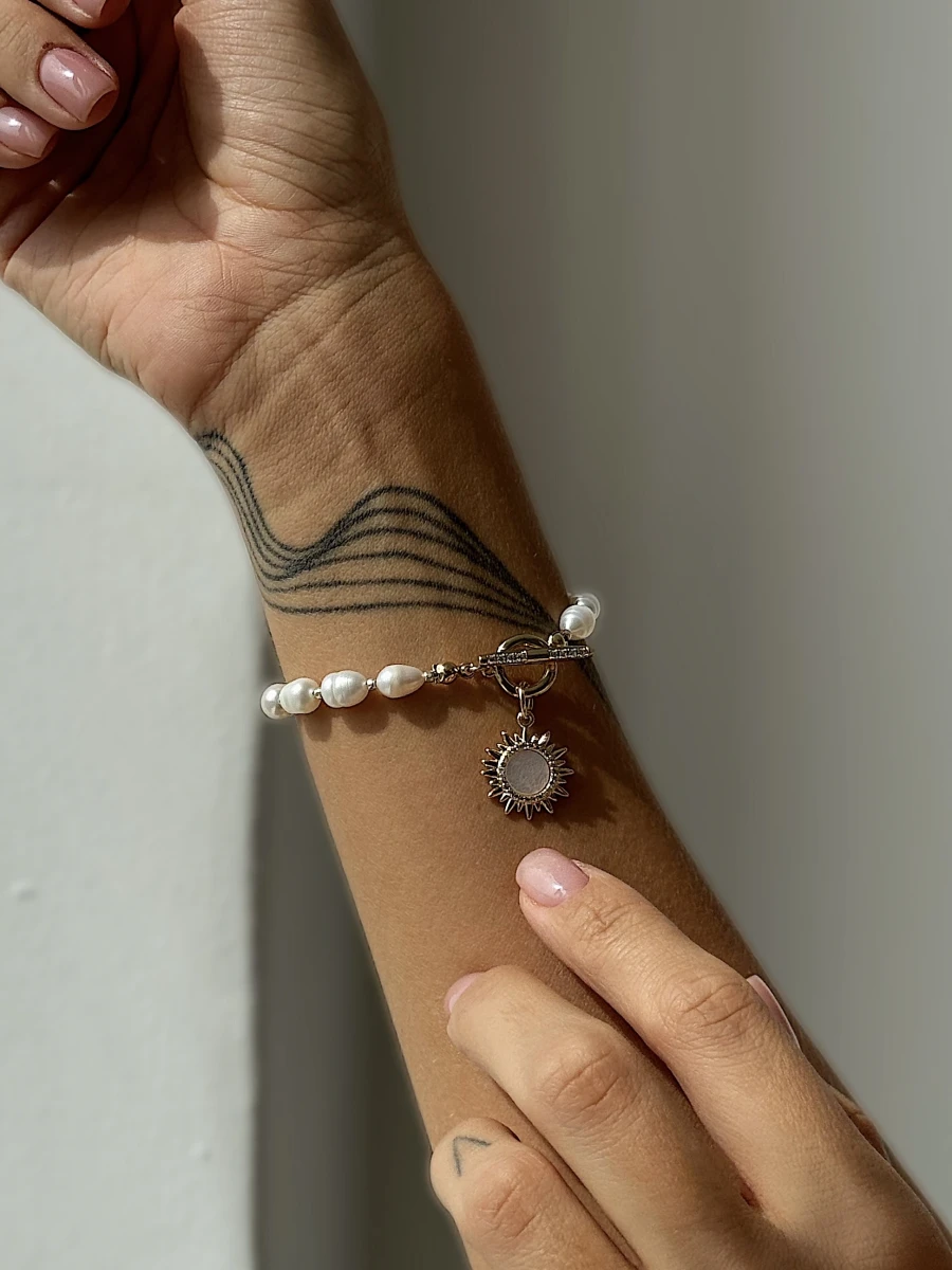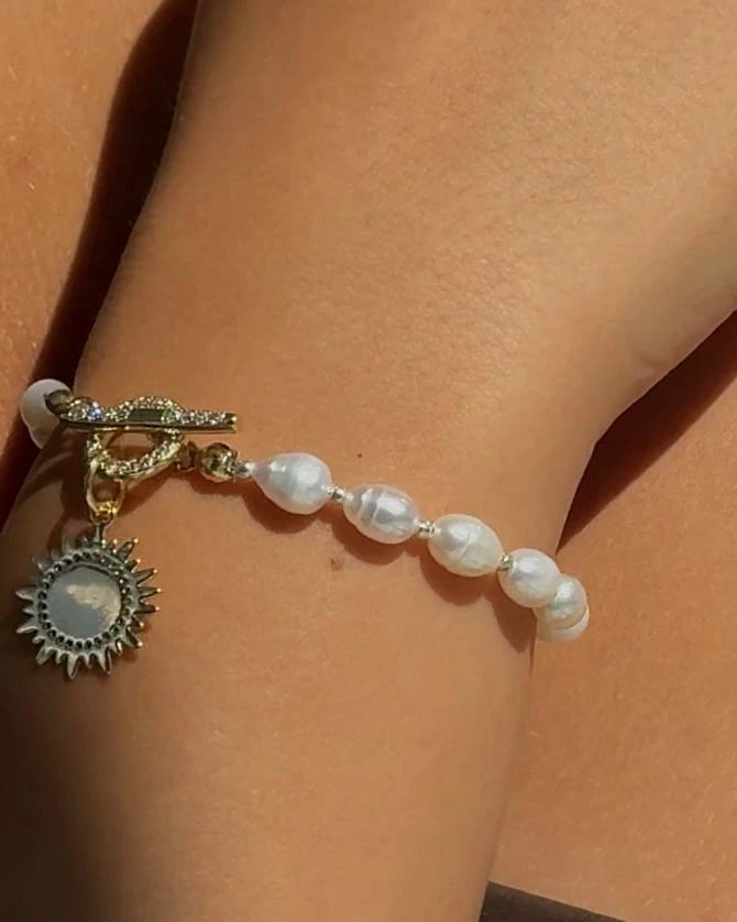 Цей вишуканий браслет - справжній шедевр ювелірного мистецтва. Він поєднує в собі ніжність перлів та перламутру з витонченим блиском фіанітів. Кожна перлина - це маленька досконалість, яка переливається м'яким світлом, а фіаніти додають браслету сяйва та вишуканості. Цей аксесуар стане чудовим доповненням до будь-якого образу і підкреслить твою жіночність та витонченість.