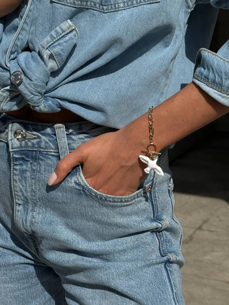 Елегантний та витончений браслет "Тогл Горлиця" стане чудовим доповненням до вашого образу. Виготовлений з полімерної глини, медсплаву та позолоти, цей браслет поєднує в собі красу та довговічність.