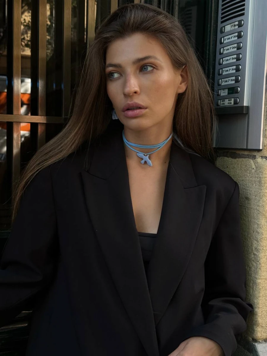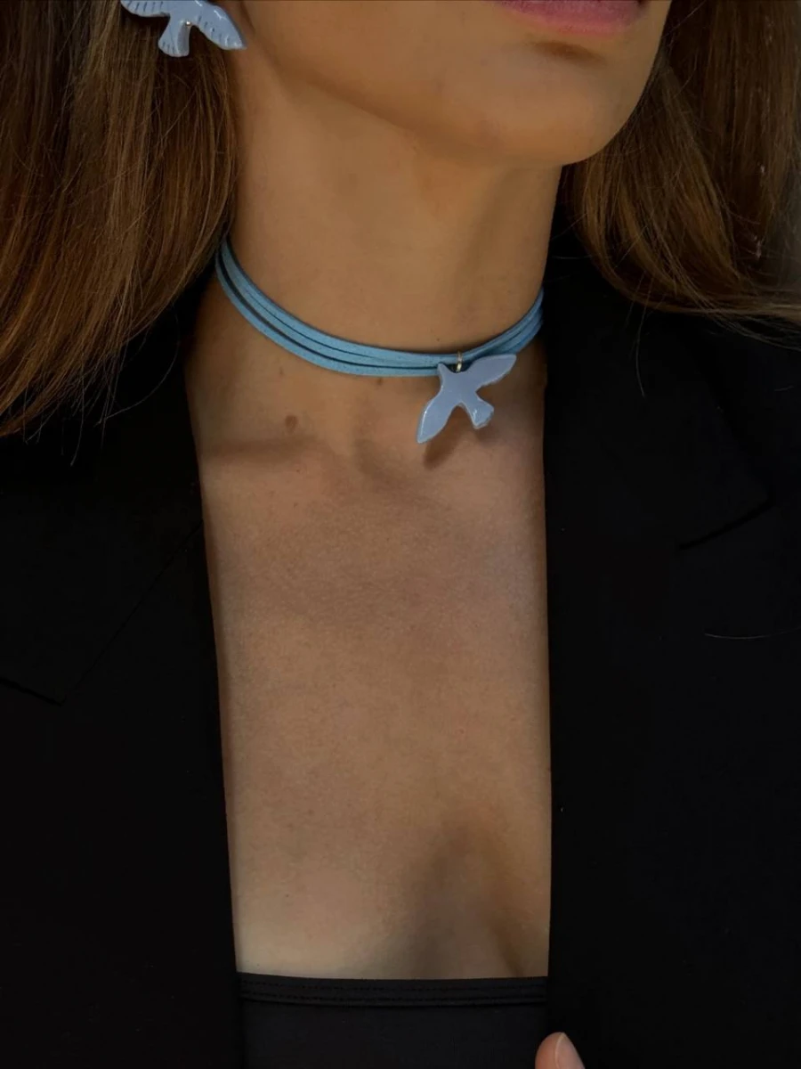 Сучасний чокер, що поєднує в собі лаконічність форм та вишуканість деталей. Блакитна горлиця, виконана в стриманій кольоровій гамі, стає яскравим акцентом і додає образу витонченості. Чокер ідеально підійде для створення як повсякденних, так і святкових образів. Він стане твоїм улюбленим аксесуаром, який підкреслить індивідуальність і хороший смак.
