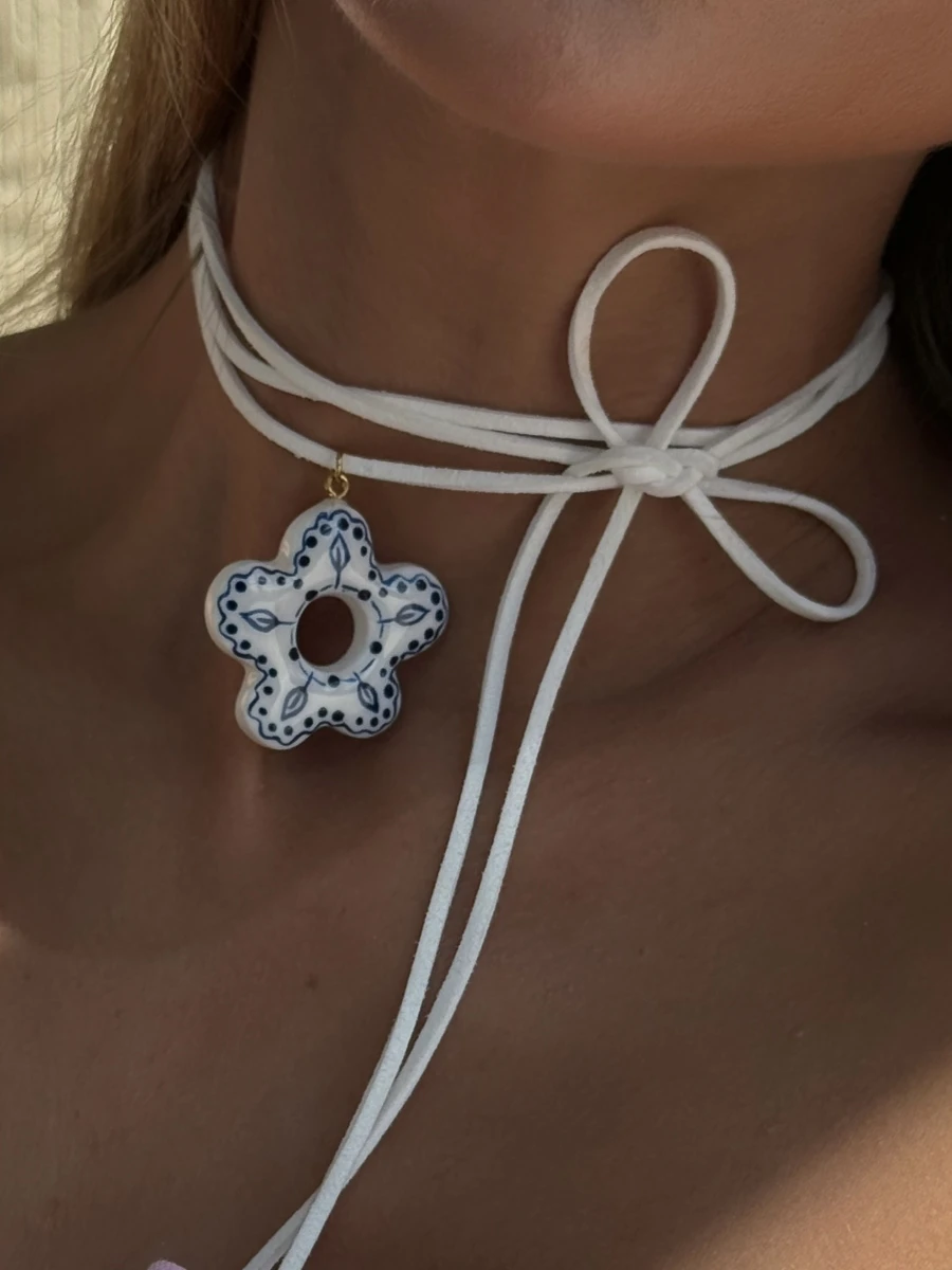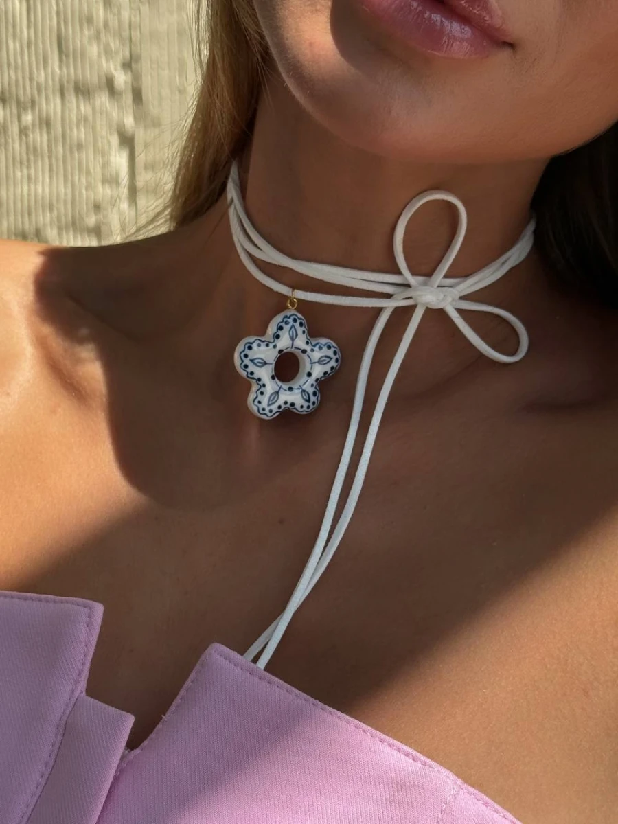Цей оригінальний чокер з кулоном ручної роботи з полімерної глини створений, щоб підкреслити вашу індивідуальність. Білий шнур довжиною 1,5 метра ніжно обвиває шию та зав’язується елегантним бантом, додаючи легкості та шарму образу. Кулон у формі квітки виконаний у витонченій техніці, поєднує в собі естетику природи та сучасний мінімалізм.