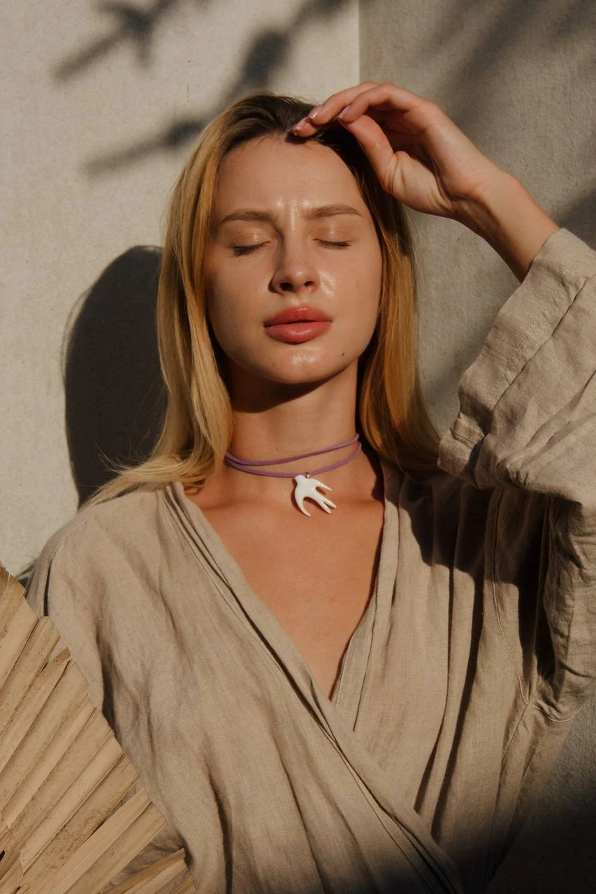Чокер "Фіолетова Ластівка" - Цей вишуканий чокер, оздоблений пташкою з полімерної глини, стане чудовим доповненням до вашого образу, додавши йому ніжності та елегантності. Виготовлений вручну з якісних матеріалів, він стане улюбленою прикрасою у вашій колекції.