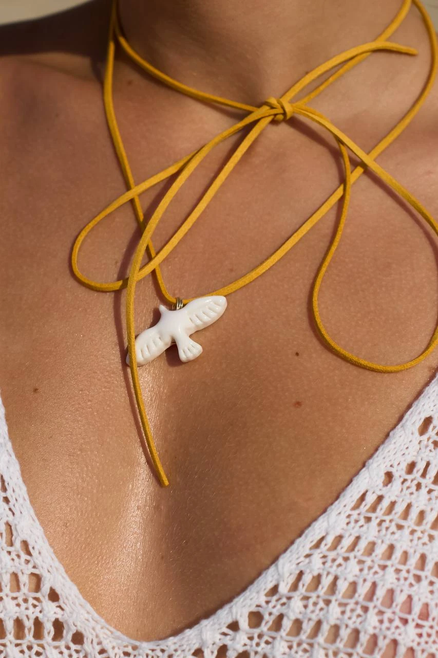 Чокер "Горлиця Сахари" - Цей вишуканий чокер виготовлений з якісної полімерної глини, яка приємна на дотик та стійка до зношення. Він має унікальний дизайн з ластівкою, що дозволяє регулювати його довжину та ідеально підігнати під будь-яку шию.