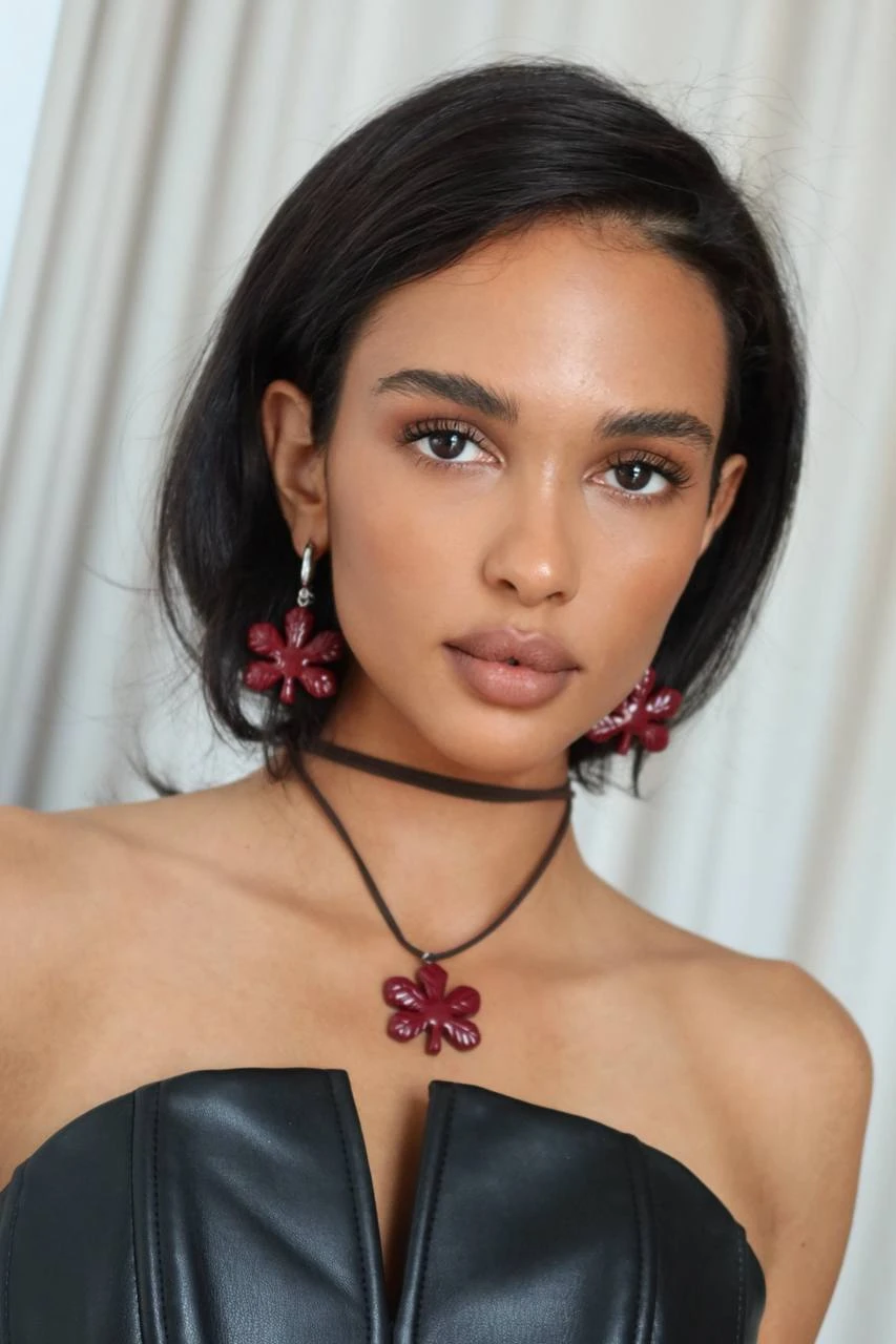 Цей чокер з каштановим листком на темній мотузці підкреслює природну красу та додає образу оригінальності. Декор із полімерної глини у поєднанні зі срібним покриттям створює гармонійний та сучасний акцент. Ідеальний вибір для тих, хто цінує стиль і унікальність.