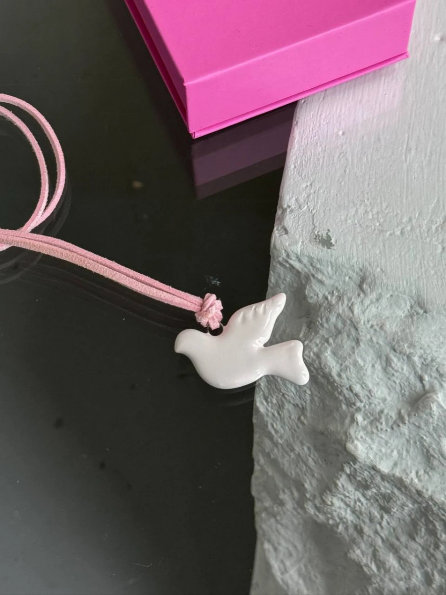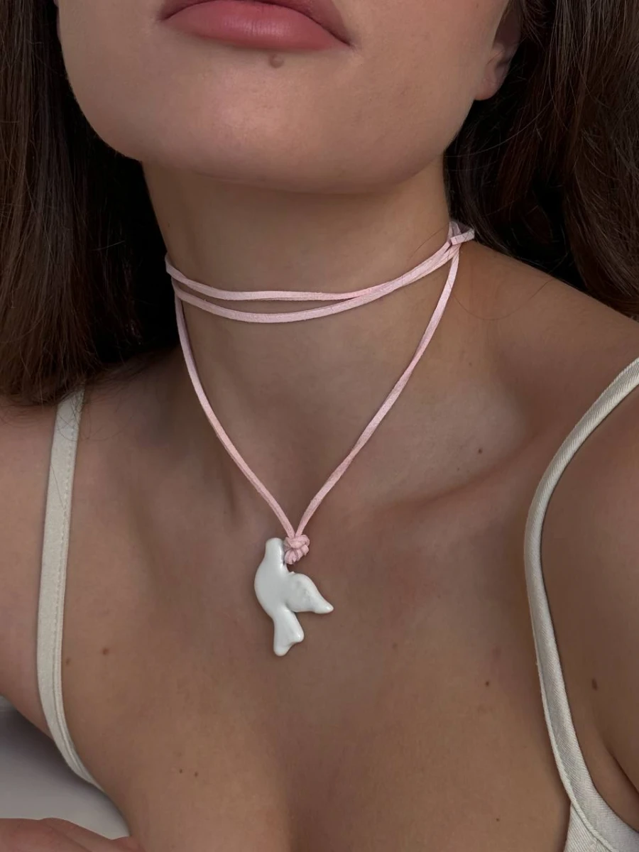 Чокер "Рожева Горлиця" - це вишуканий аксесуар, який підкреслить вашу красу та індивідуальність. Виготовлений з мотузки та полімерної глини, він поєднує в собі ніжність та елегантність.