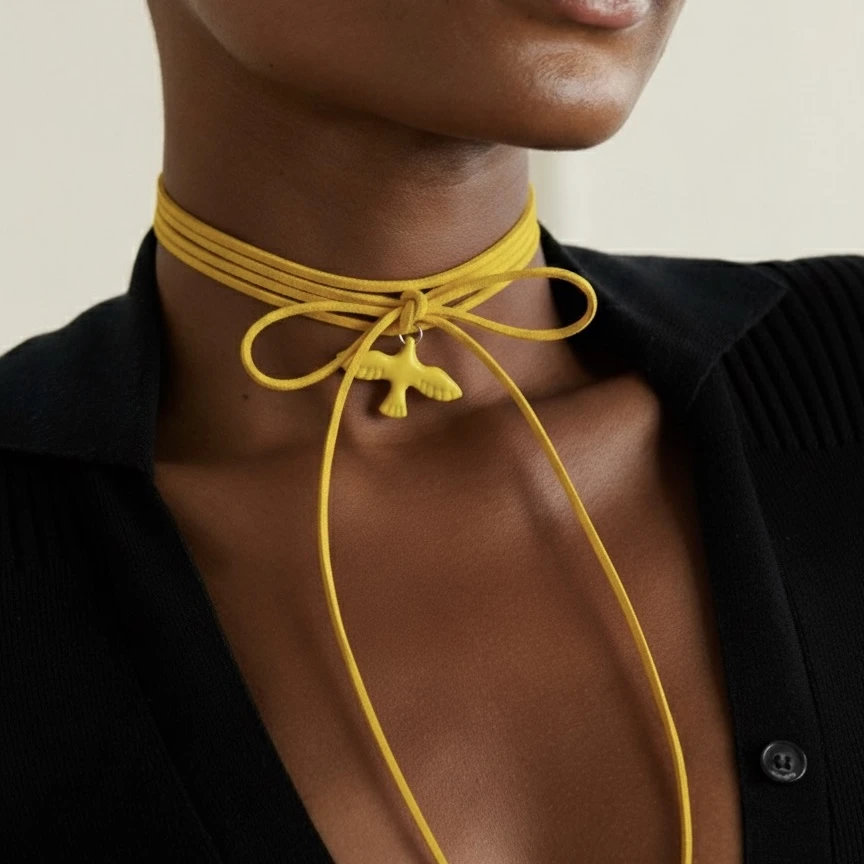 Цей вишуканий чокер – це справжній шедевр ювелірного мистецтва, створений для сміливих і стильних особистостей. М'який медсплав, вкритий благородним сріблом, створює ідеальне полотно для ніжної пташки з полімерної глини, яка нагадує про свободу і легкість. Кожна деталь цього прикрасу виконана з любов'ю, а його унікальний дизайн підкреслить твою індивідуальність. Додай родзинку своєму образу з цим чарівним чокером!