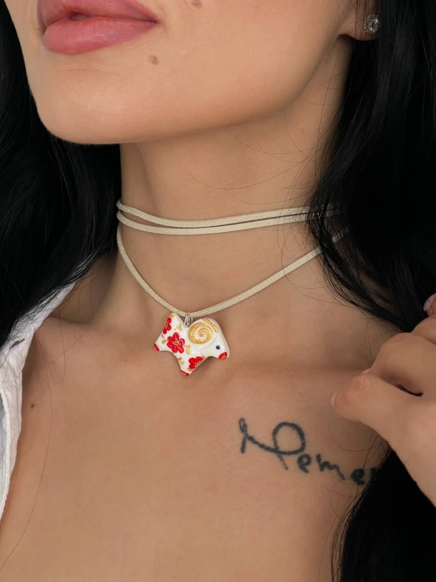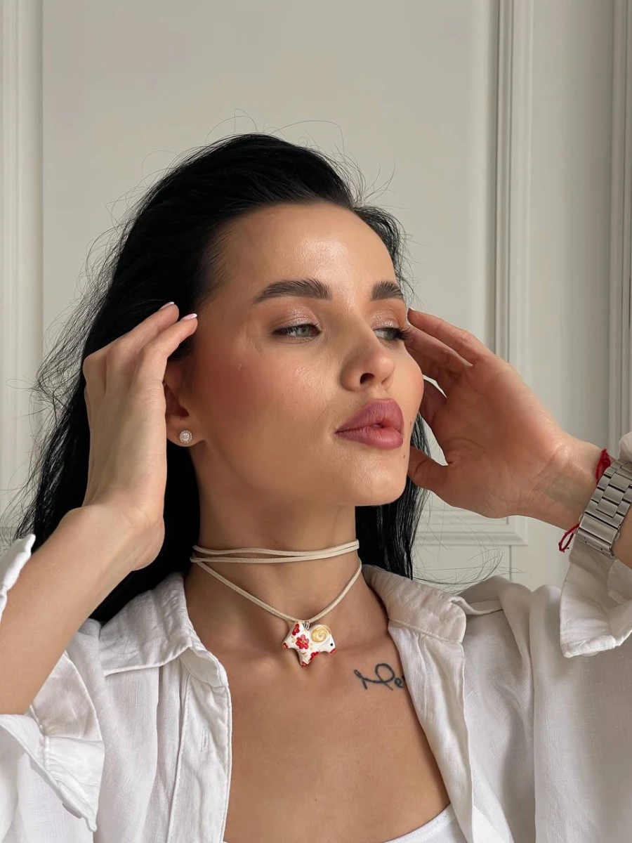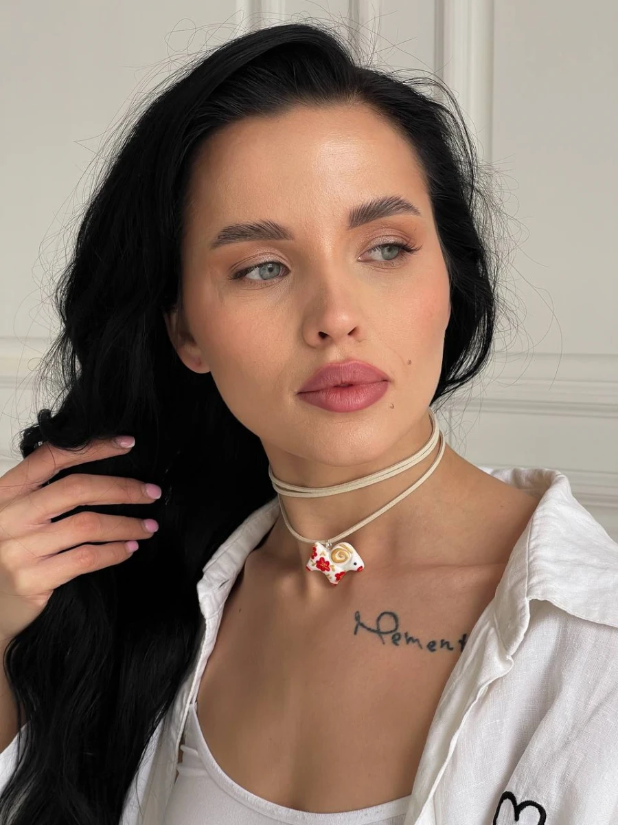 Чокер "Жовтий Баранець" — яскравий акцент у вашому образі. Виготовлений з медсплаву, полімерної глини та мотузки довжиною 1,5 м, що дозволяє легко регулювати посадку. Незвичайний дизайн і теплі кольори роблять цей аксесуар унікальним доповненням до будь-якого стилю.