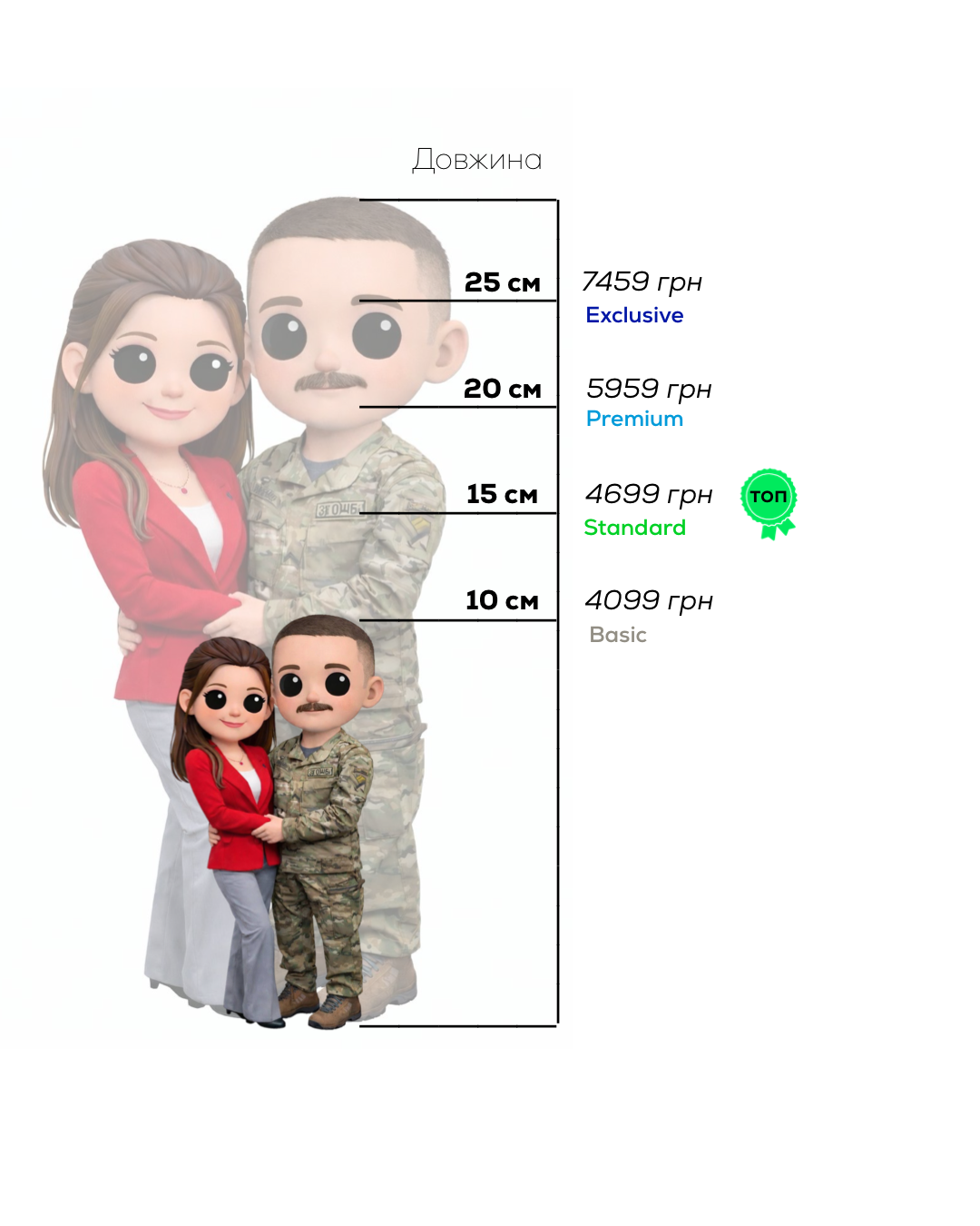 Потрібно лише ваше фото, за яким наш менеджер зробить макет для 3d друку — а далі ми вручну розмалюємо всі деталі.