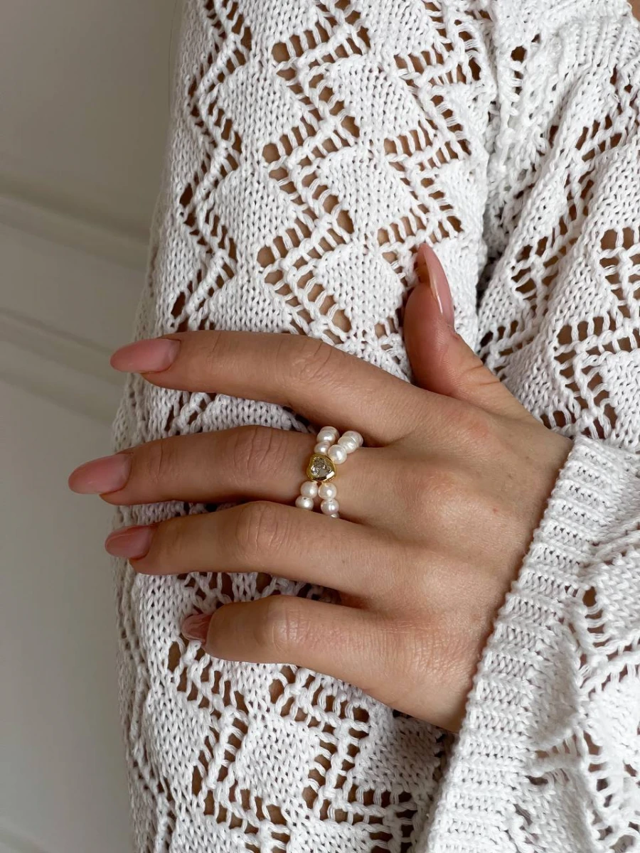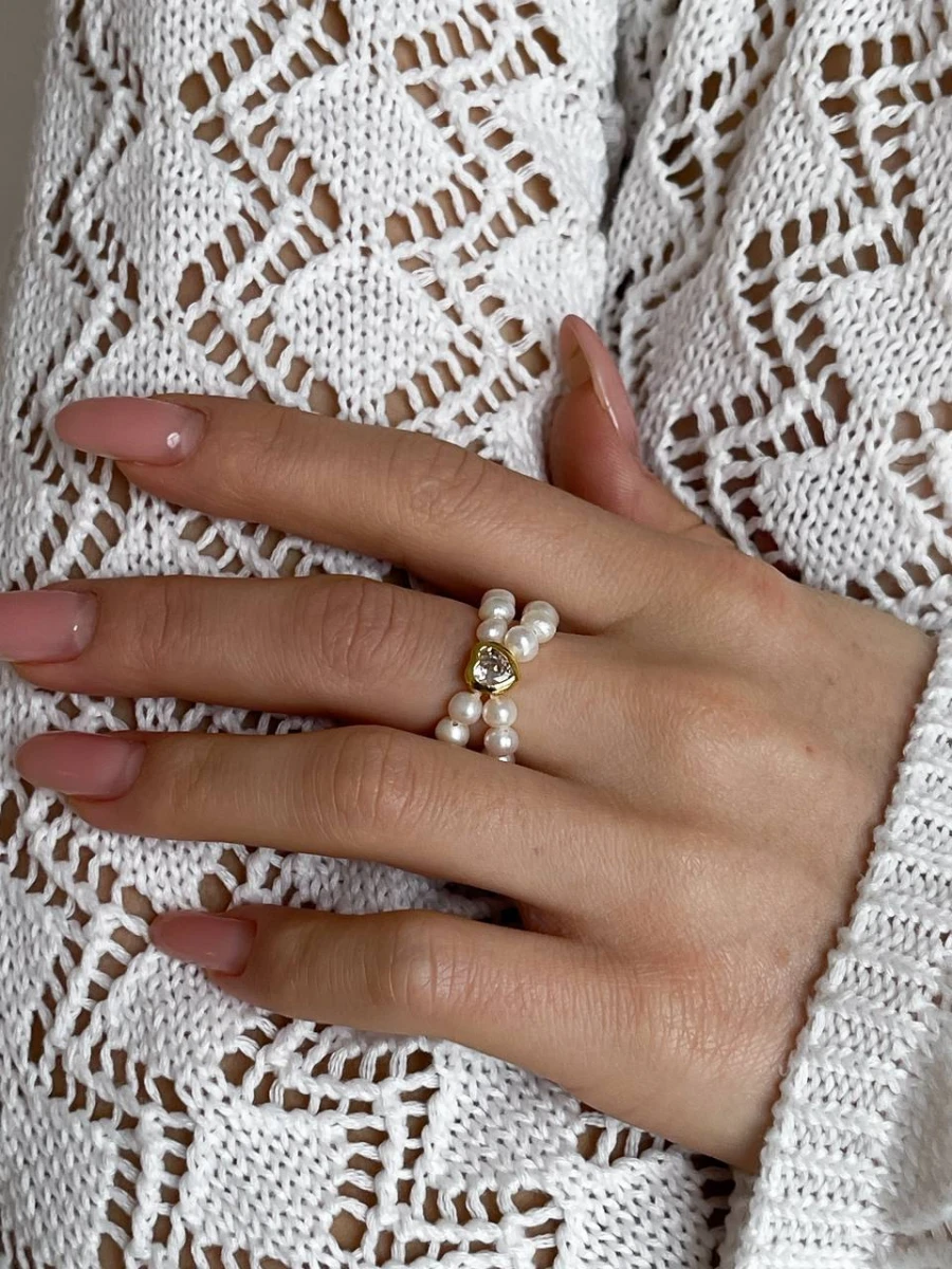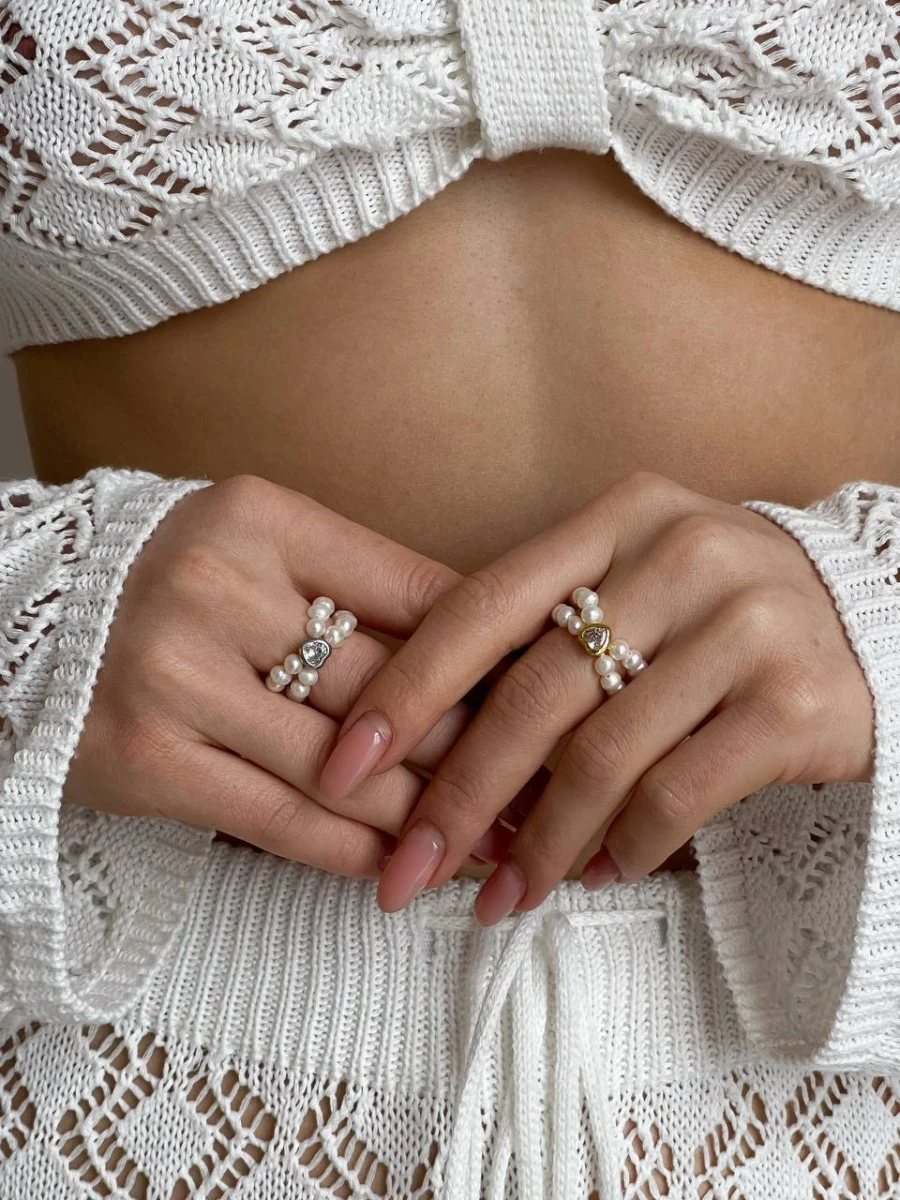 Елегантна каблучка, яка поєднує в собі вишуканість і сучасний стиль. Виготовлена з високоякісного медичного сплаву з позолотою, прикрашена ніжними перлами та сяючим фіанітом. "Gold Twice" стане ідеальним аксесуаром для будь-якої події, додаючи вашому образу вишуканого блиску.