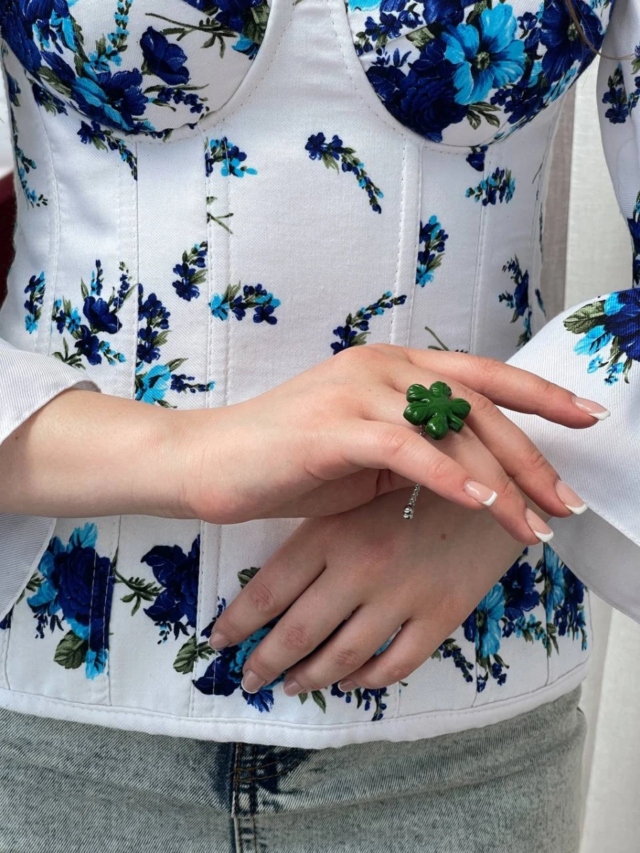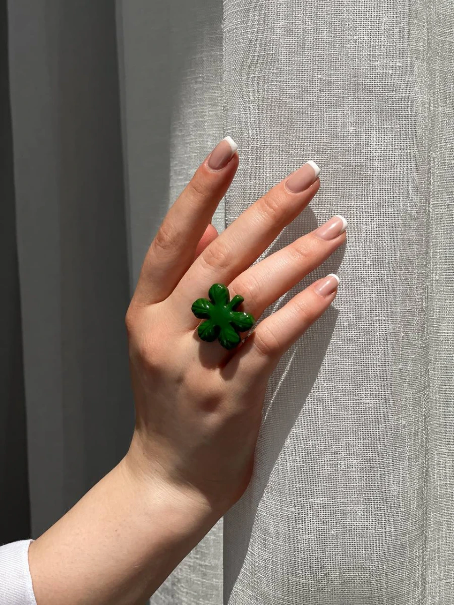 Каблучка "Київський Каштан" — стильна та символічна прикраса, натхненна красою київських каштанів. Виготовлена з медсплаву з покриттям із срібла та елементами з полімерної глини. Універсальний розмір забезпечує зручну посадку на будь-який палець. Ідеальний вибір для тих, хто цінує унікальні аксесуари з душею.