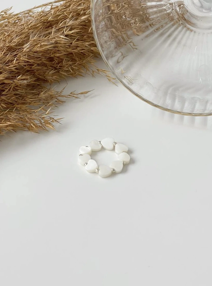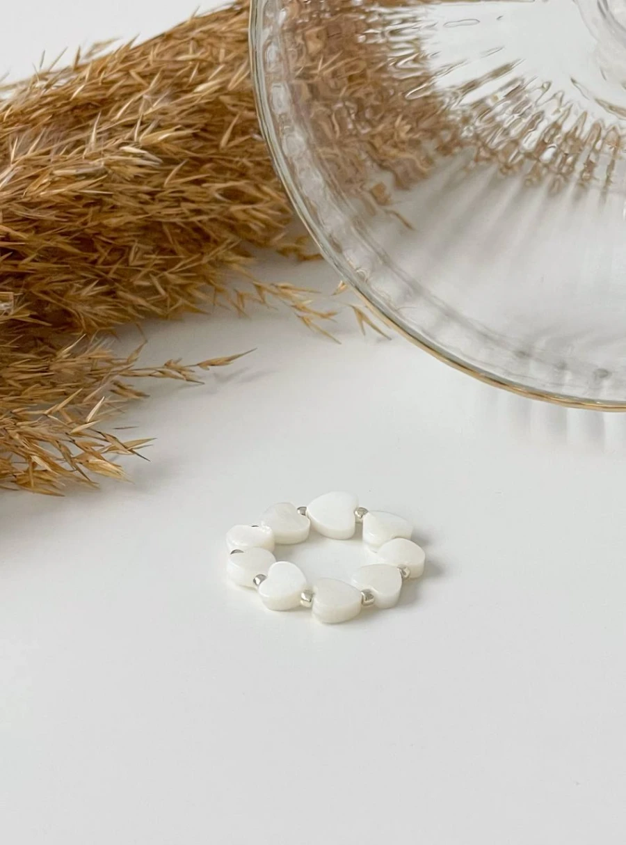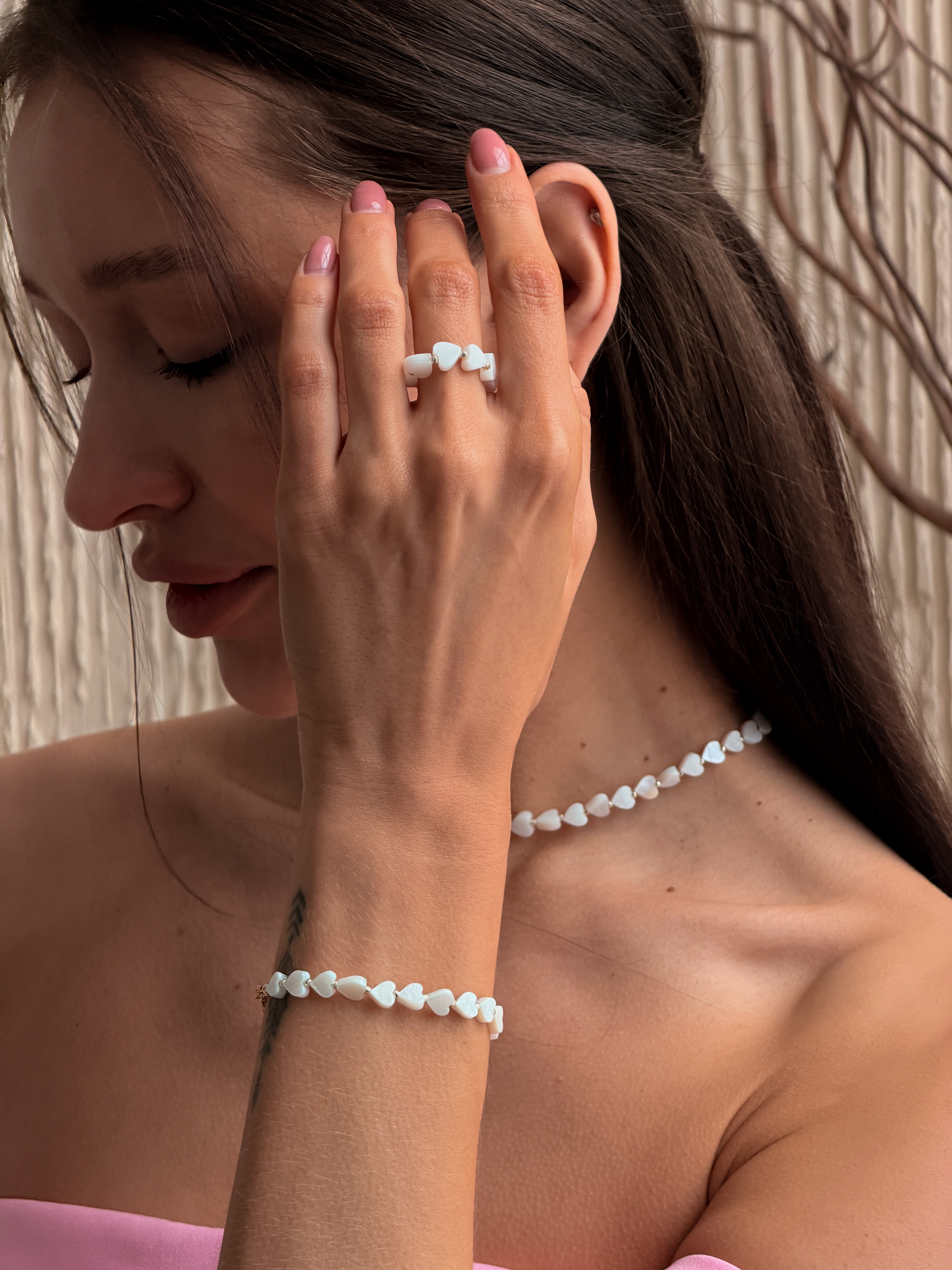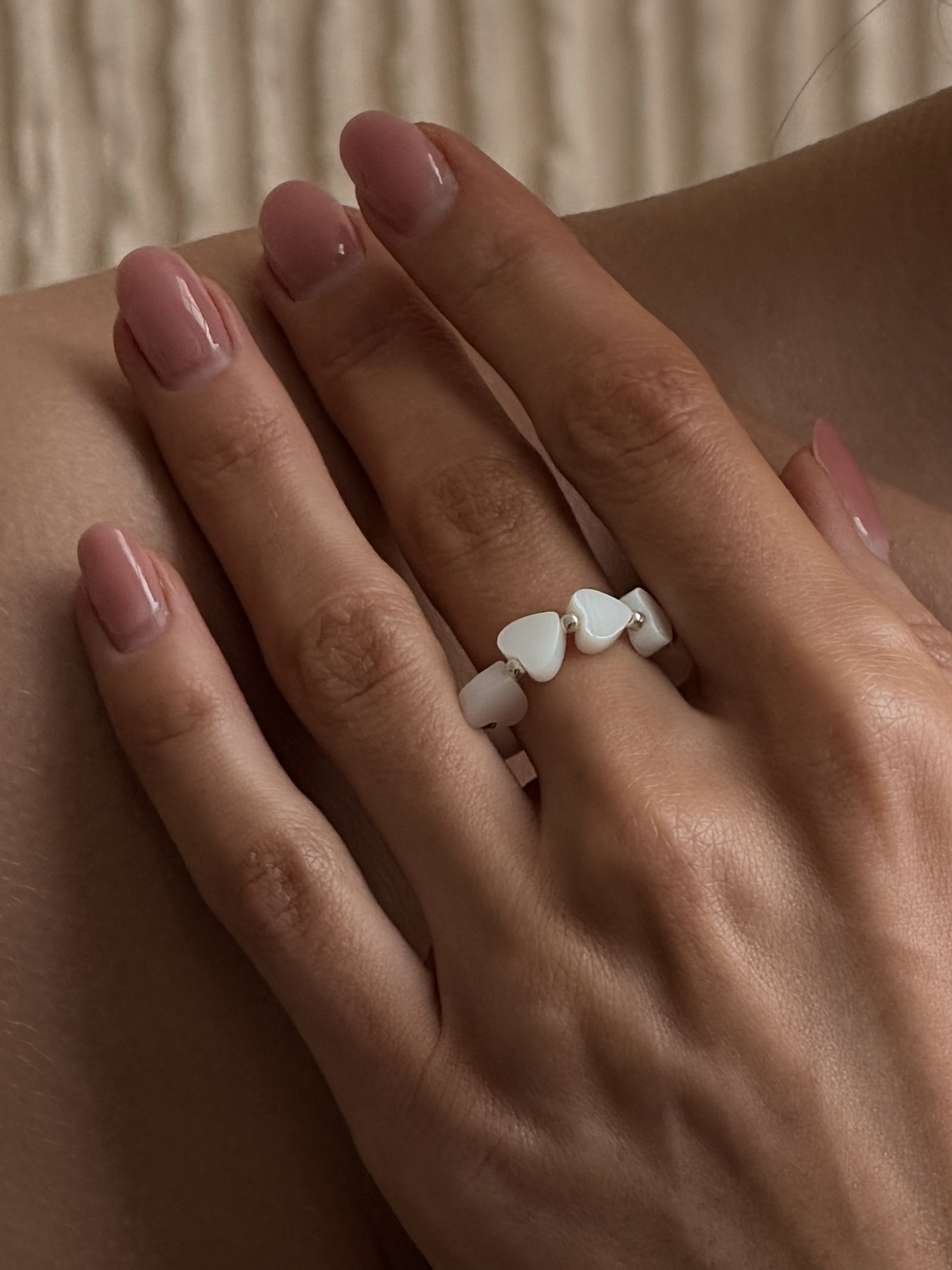 Ця каблучка має форму сердець, виготовлених з перламутру, що надає їй особливої ніжності.