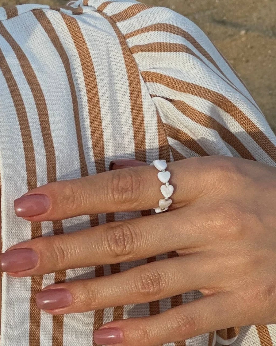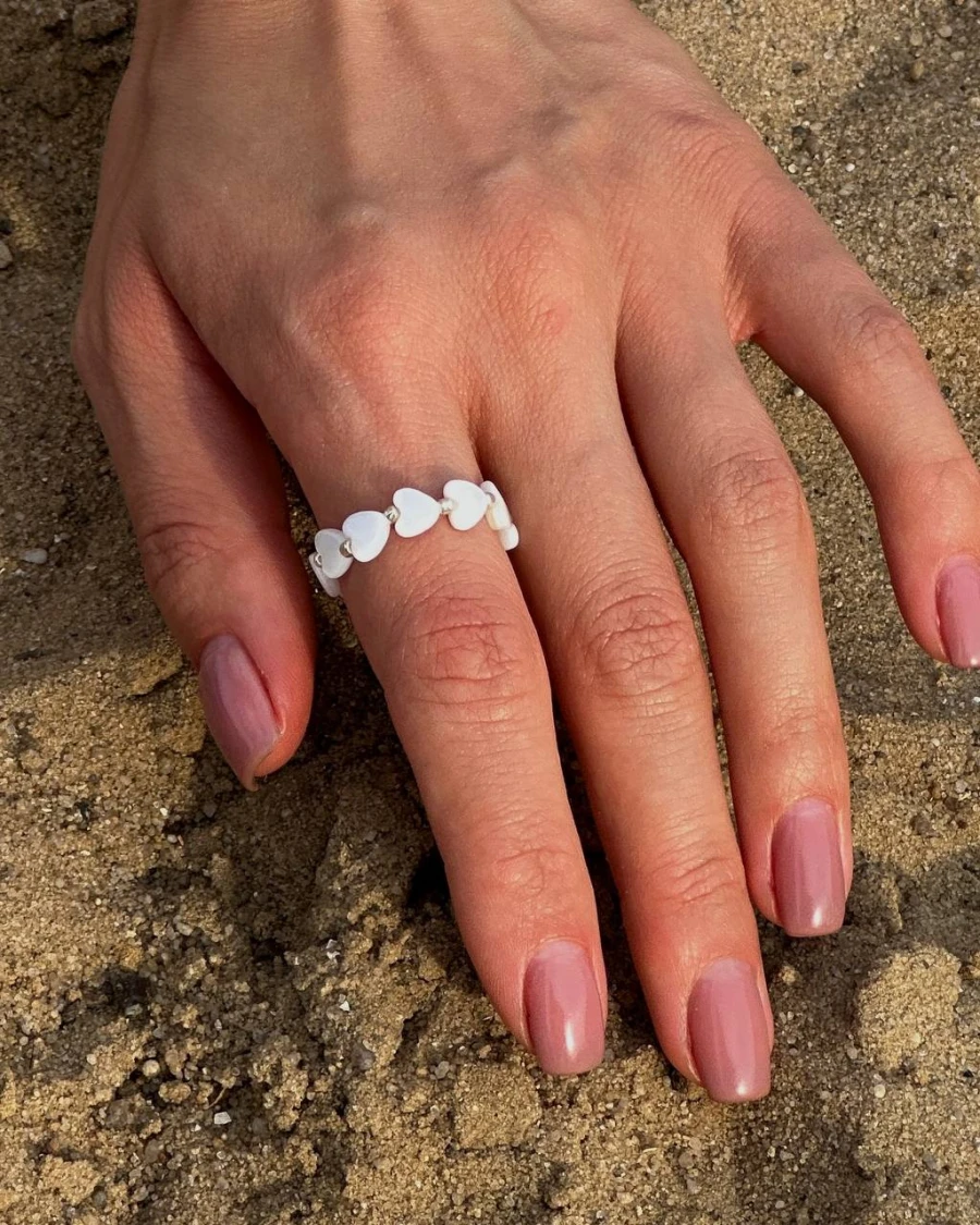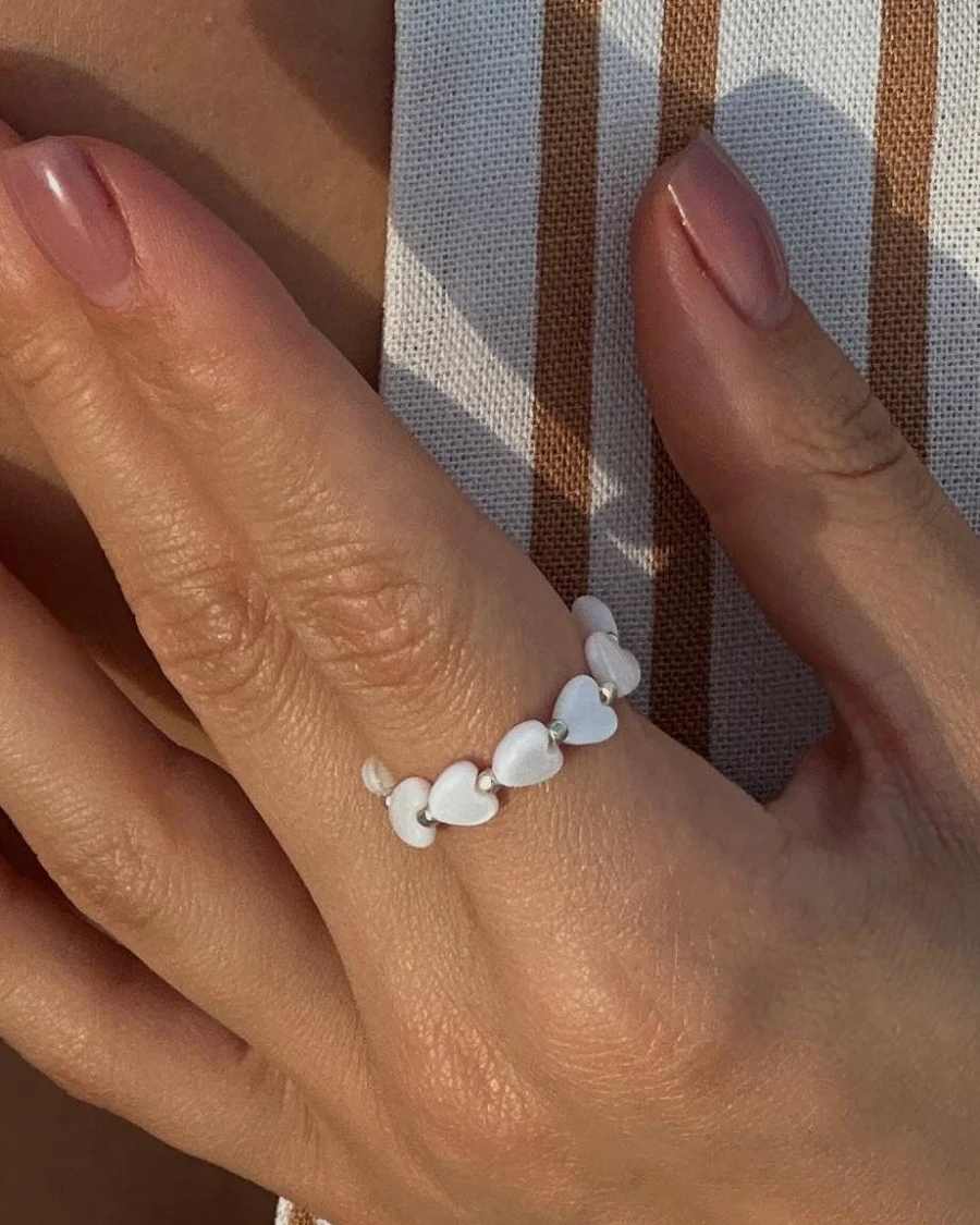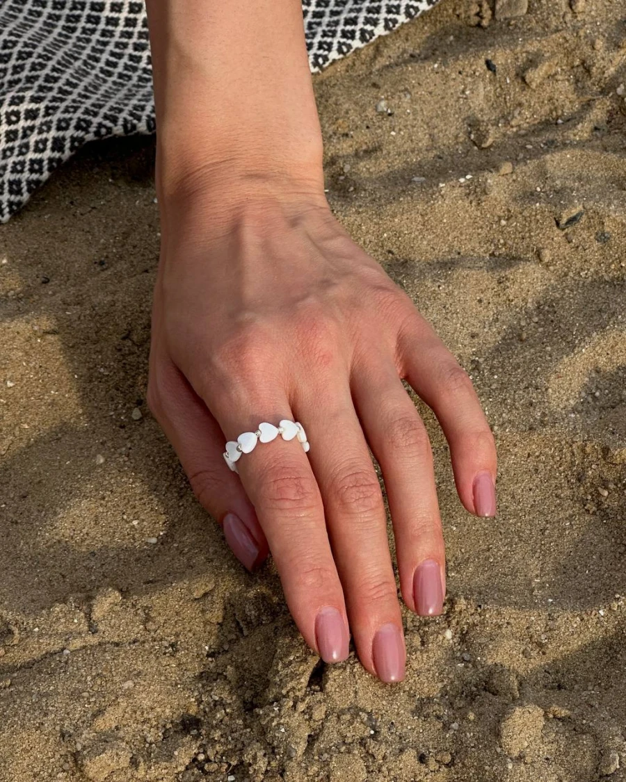 Ця каблучка має форму сердець, виготовлених з перламутру, що надає їй особливої ніжності.