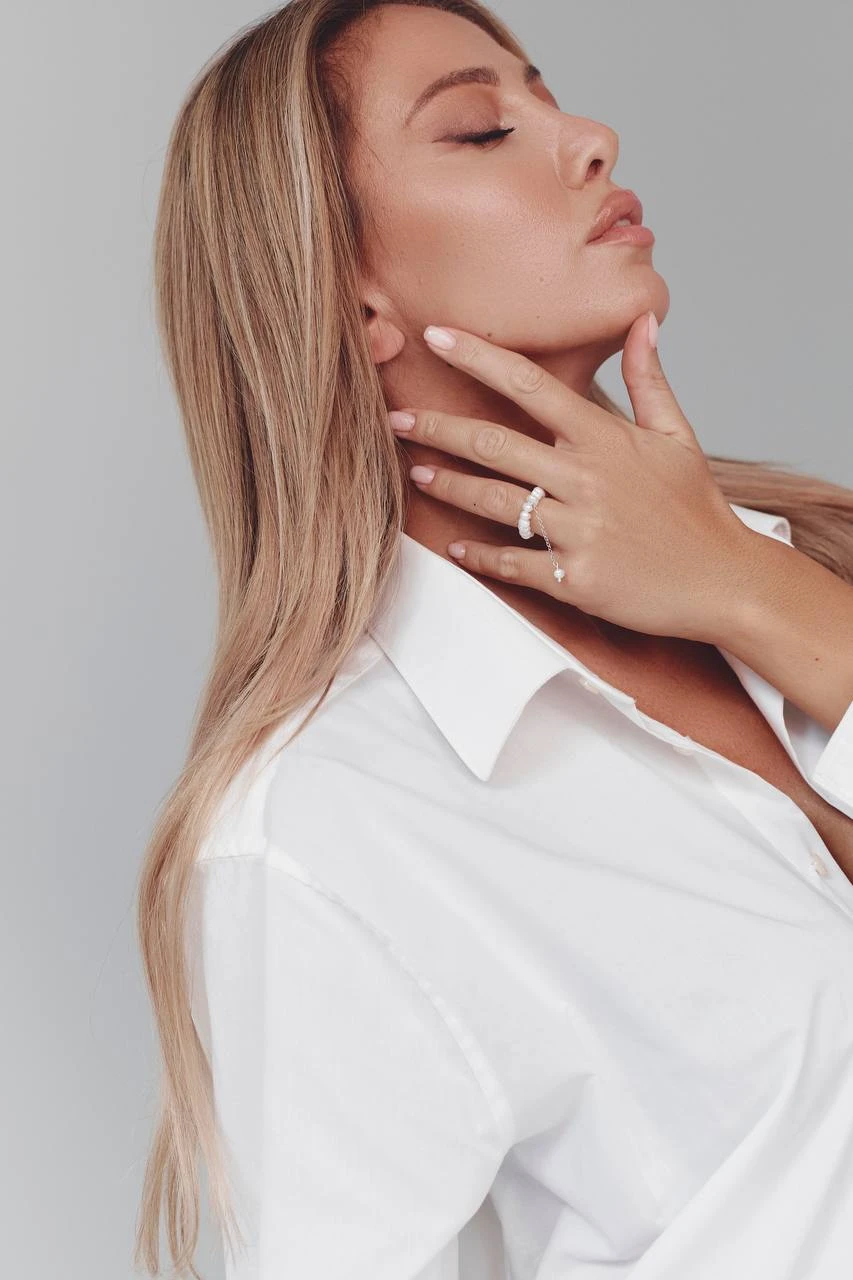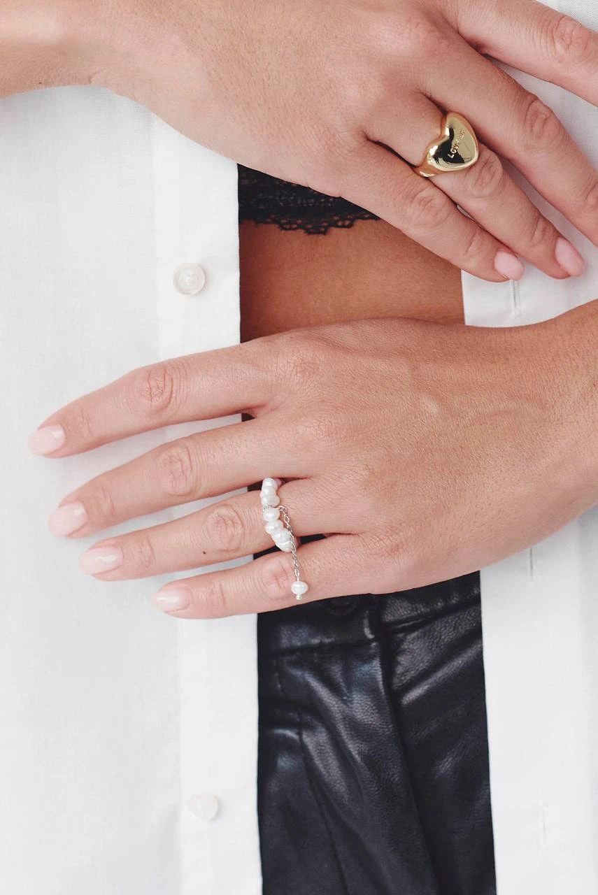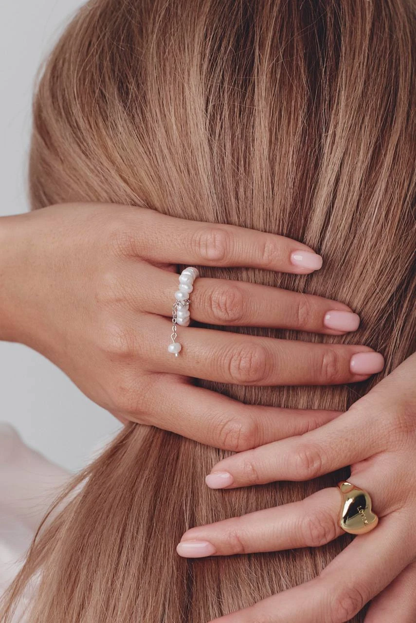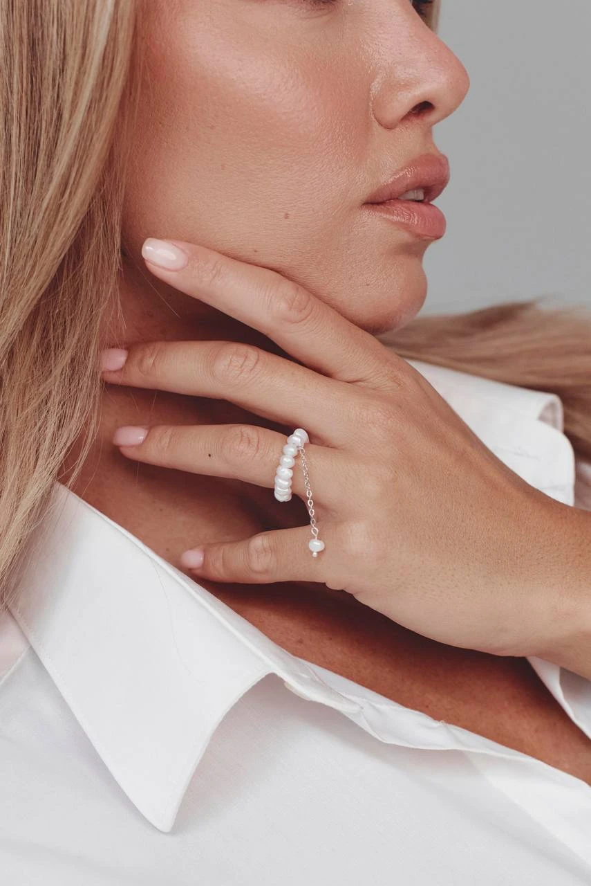 Елегантна срібна каблучка, прикрашена вишуканими перлинами, стане незамінним аксесуаром для будь-якої жінки. М'який блиск перлин та благородний вигляд срібла створюють гармонійний дует, який підкреслить вашу витонченість та жіночність. Ця каблучка ідеально доповнить як повсякденний, так і святковий образ.