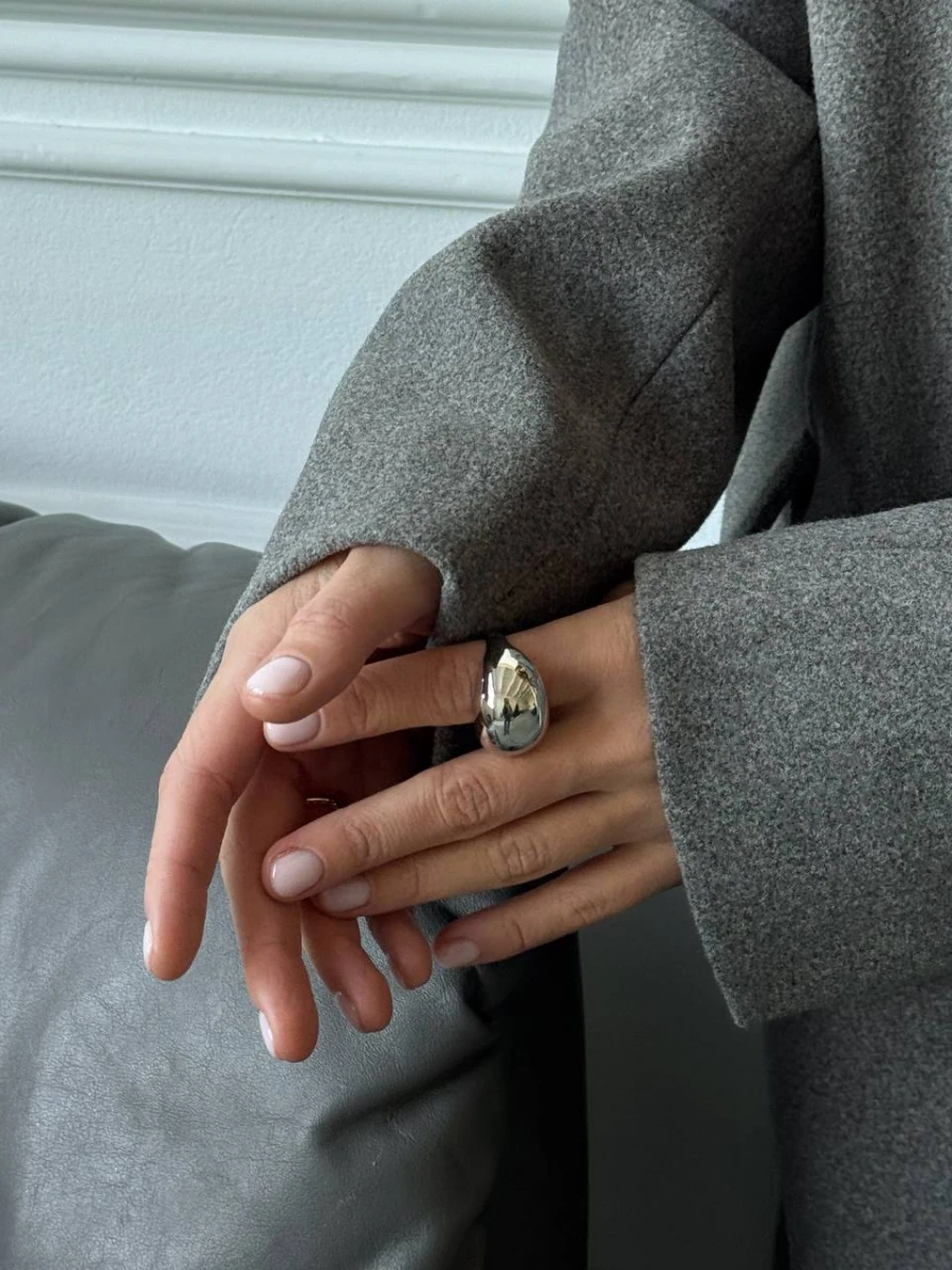 Елегантна каблучка, виготовлена з медичного сплаву та покрита сріблом. Витончений дизайн нагадує ніжні хвилі, які підкреслюють вашу природну красу. Ідеальний вибір для стильного повсякденного образу або особливих моментів.