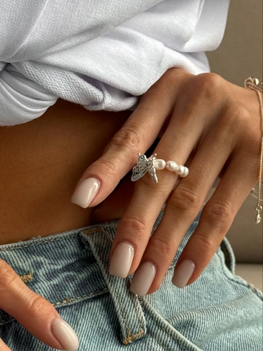 Каблучка "Steel Fly" - це вишуканий аксесуар, який підкреслить вашу красу та індивідуальність. Виготовлена з перлів, медсплаву та срібного покриття, вона поєднує в собі елегантність та блиск.