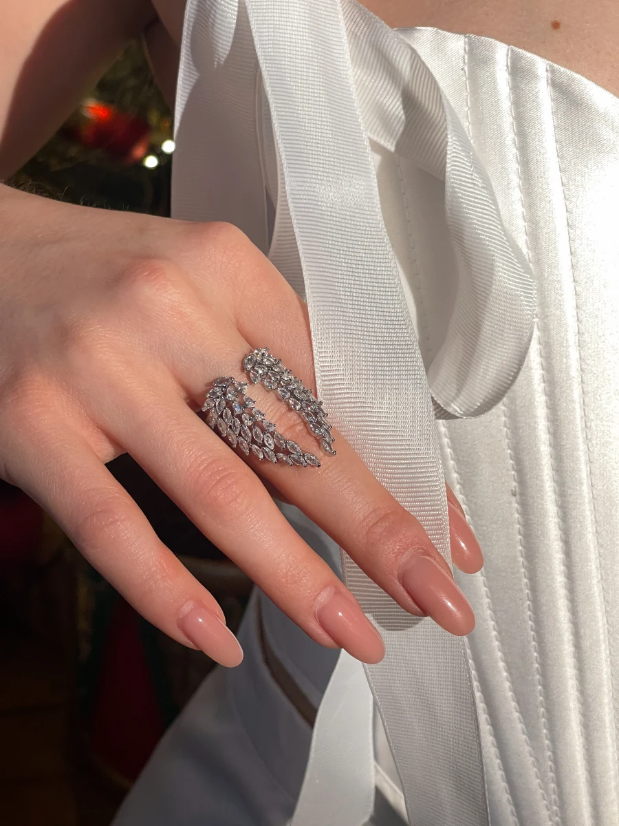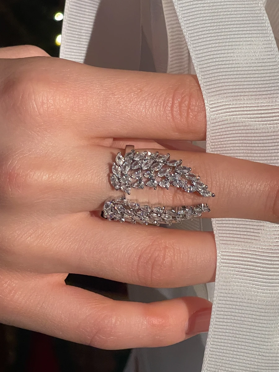 Каблучка "Wings" — стильний аксесуар, який додасть елегантності вашому образу. Виготовлена з медсплаву з срібним покриттям, каблучка прикрашена фіанітами. Легкий та витончений дизайн робить її ідеальним вибором для будь-якої урочистої події чи щоденного носіння. Тягнеться розмір 18-22.