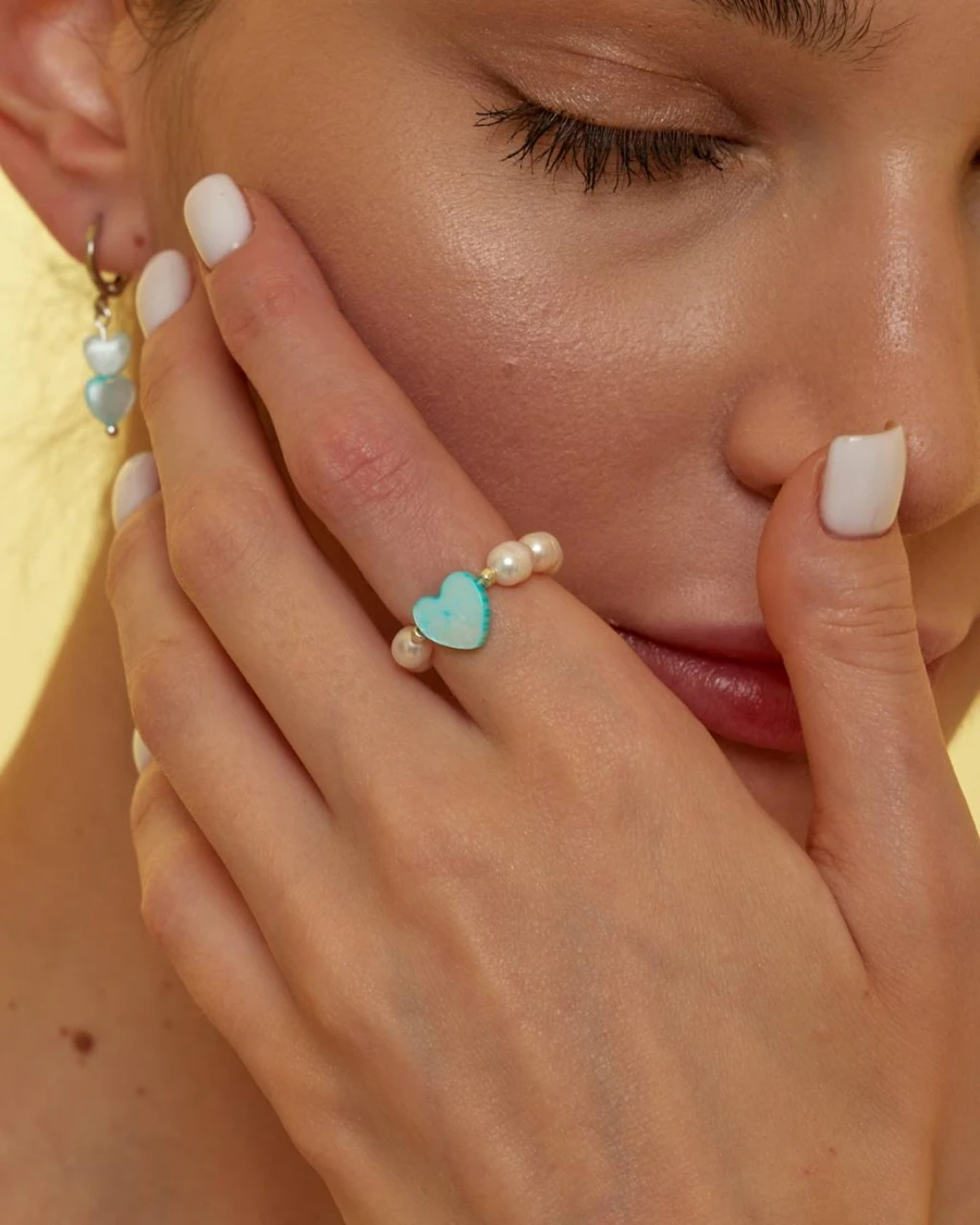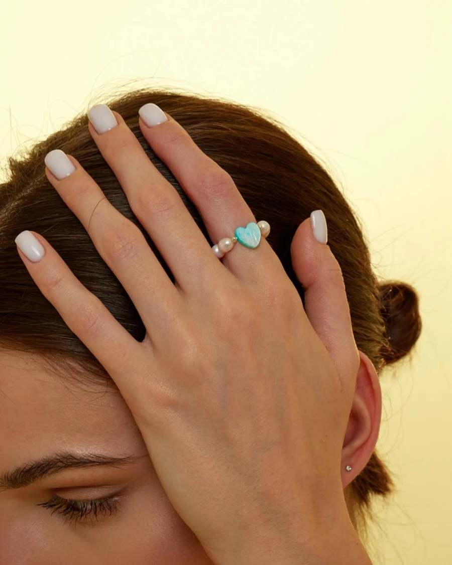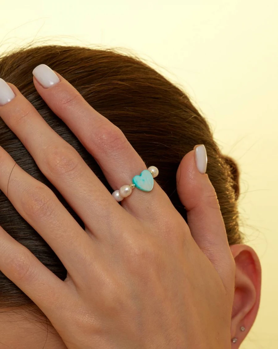Каблучка "Закохане Серце"- виточненна та ніжна прикраса з перламутру та перлів,яка неодмінно підкорить ваше серденько,адже в ній поєдналась ніжність та стиль!