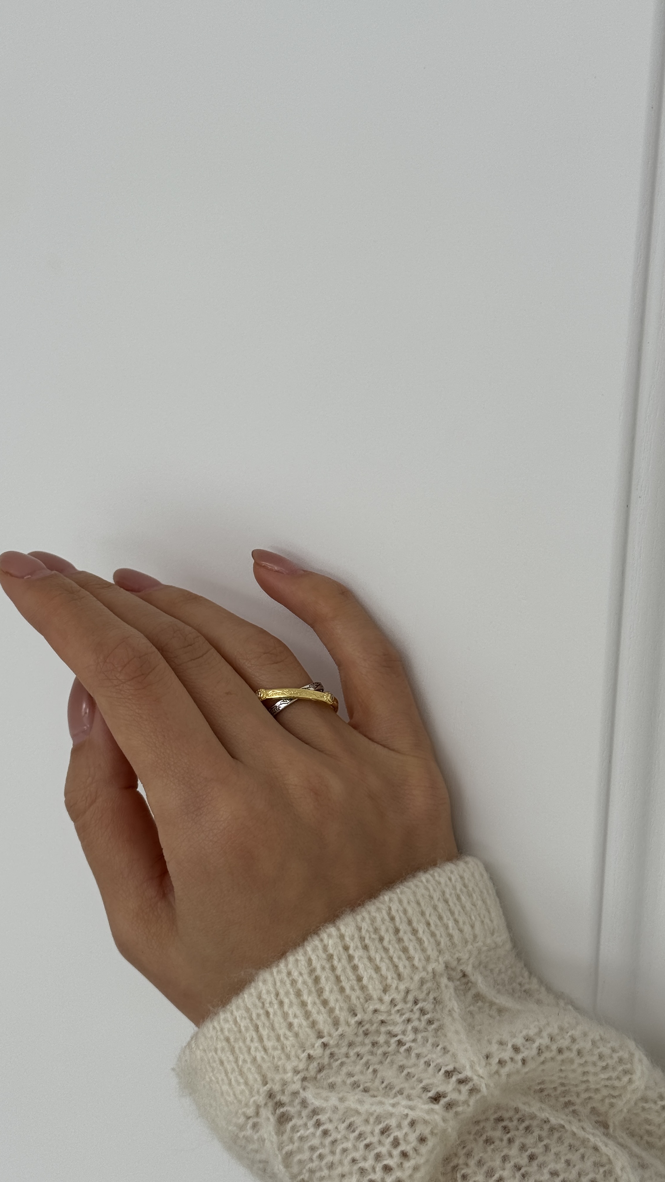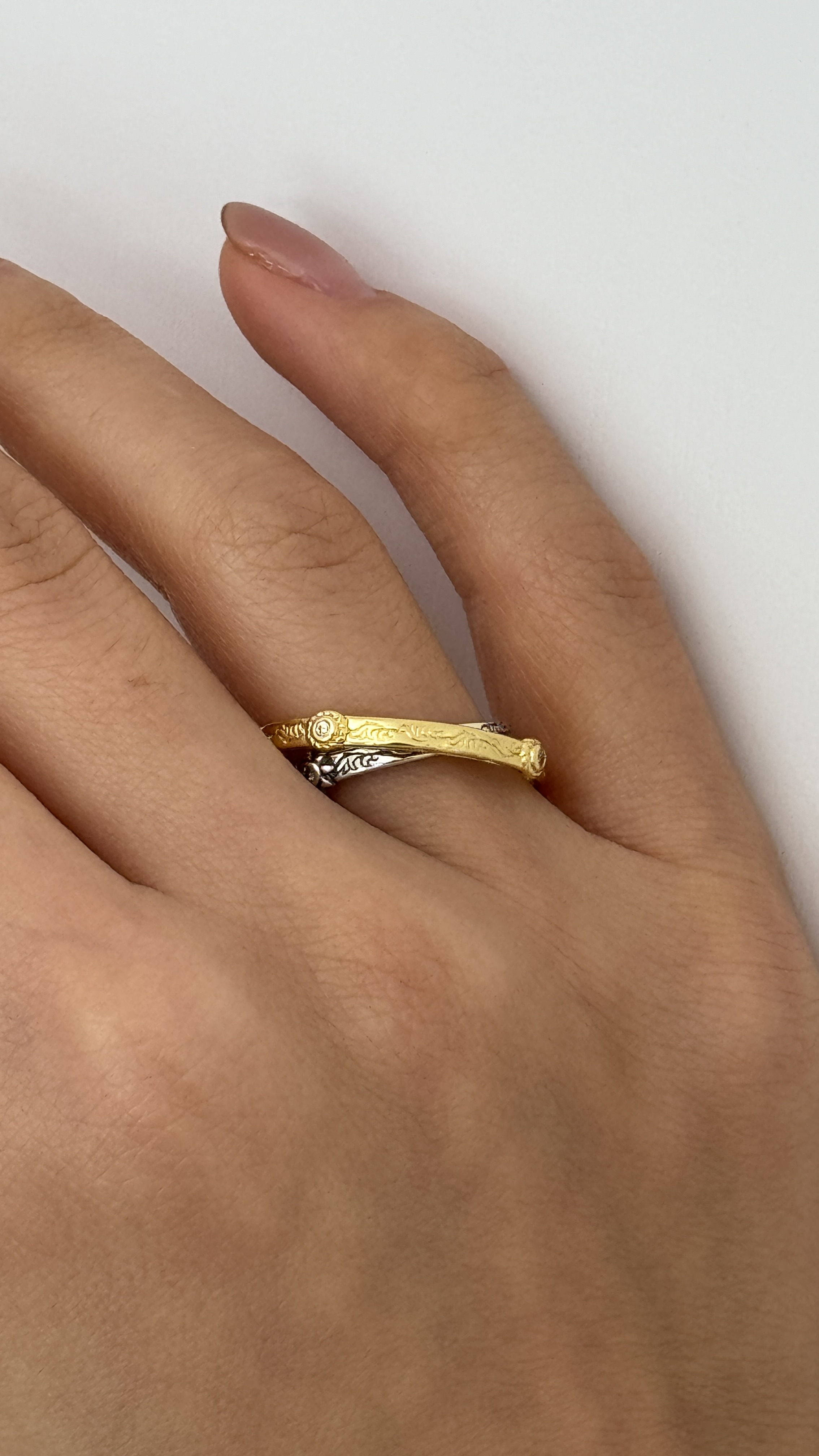 Каблучка «Баланс» — сучасний символ гармонії та впевненості. Два переплетені метали — тепла позолота і холодне срібне покриття — створюють стильний контраст, що уособлює рівновагу, доповнення та цілісність. Лаконічна форма робить прикрасу універсальною та легкою для поєднання з іншими аксесуарами.