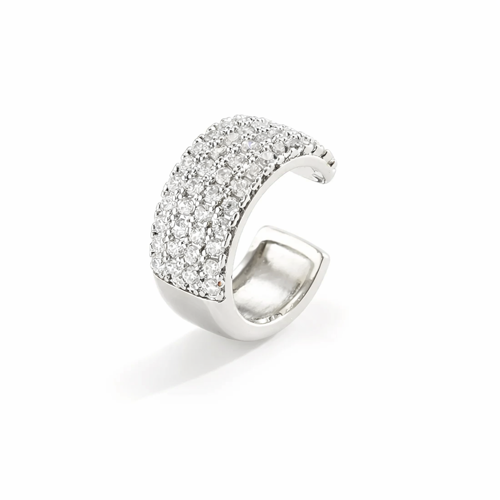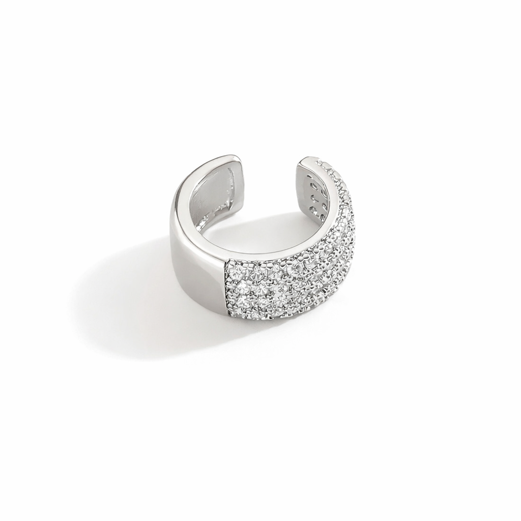 Кафф виготовлений із медсплаву зі срібним покриттям, а циркони додають делікатного блиску. Легкий, зручний та не потребує проколу — ідеальний акцент для тих, хто цінує стриману елегантність.