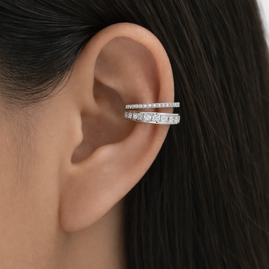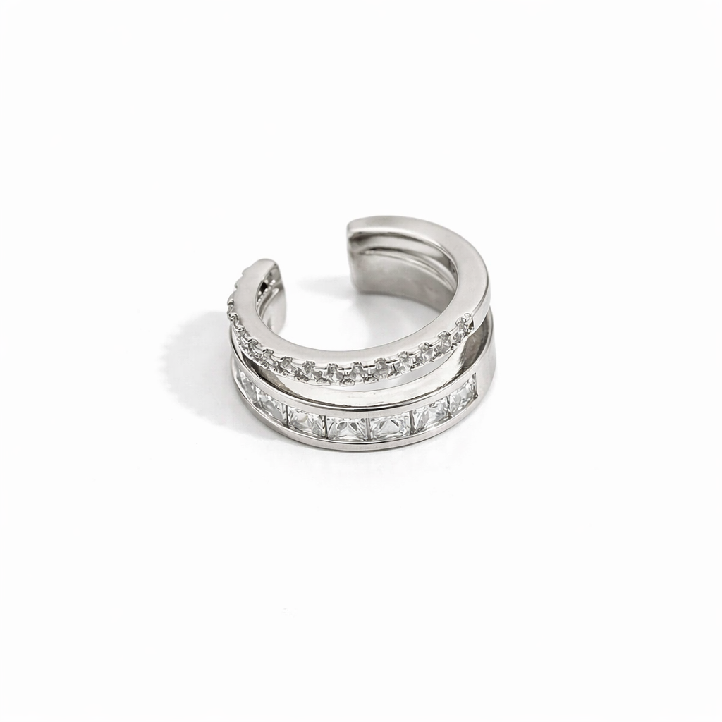 Кафф "Twins" — стильна дизайнерська сережка з подвійним акцентом та сяйливими цирконами, що створюють ефект балансу й симетрії. Срібне покриття на медсплаві підкреслює сучасний характер прикраси. Кафф комфортно фіксується без проколу та стане універсальним доповненням до щоденних і вечірніх образів.