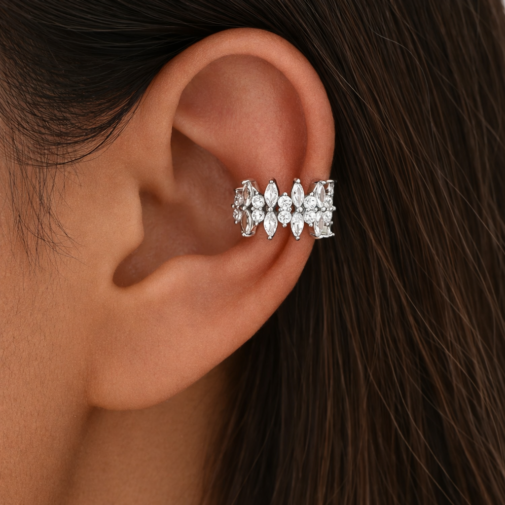 Кафф Wish — витончений акцент із ноткою мрійливості. Виготовлений із медичного сплаву, прикрашений сяючими цирконами та має срібне покриття. Кафф додає образу легкого блиску й елегантності, підкреслюючи індивідуальність та сучасний стиль. Ідеальний для повсякденних і святкових образів.