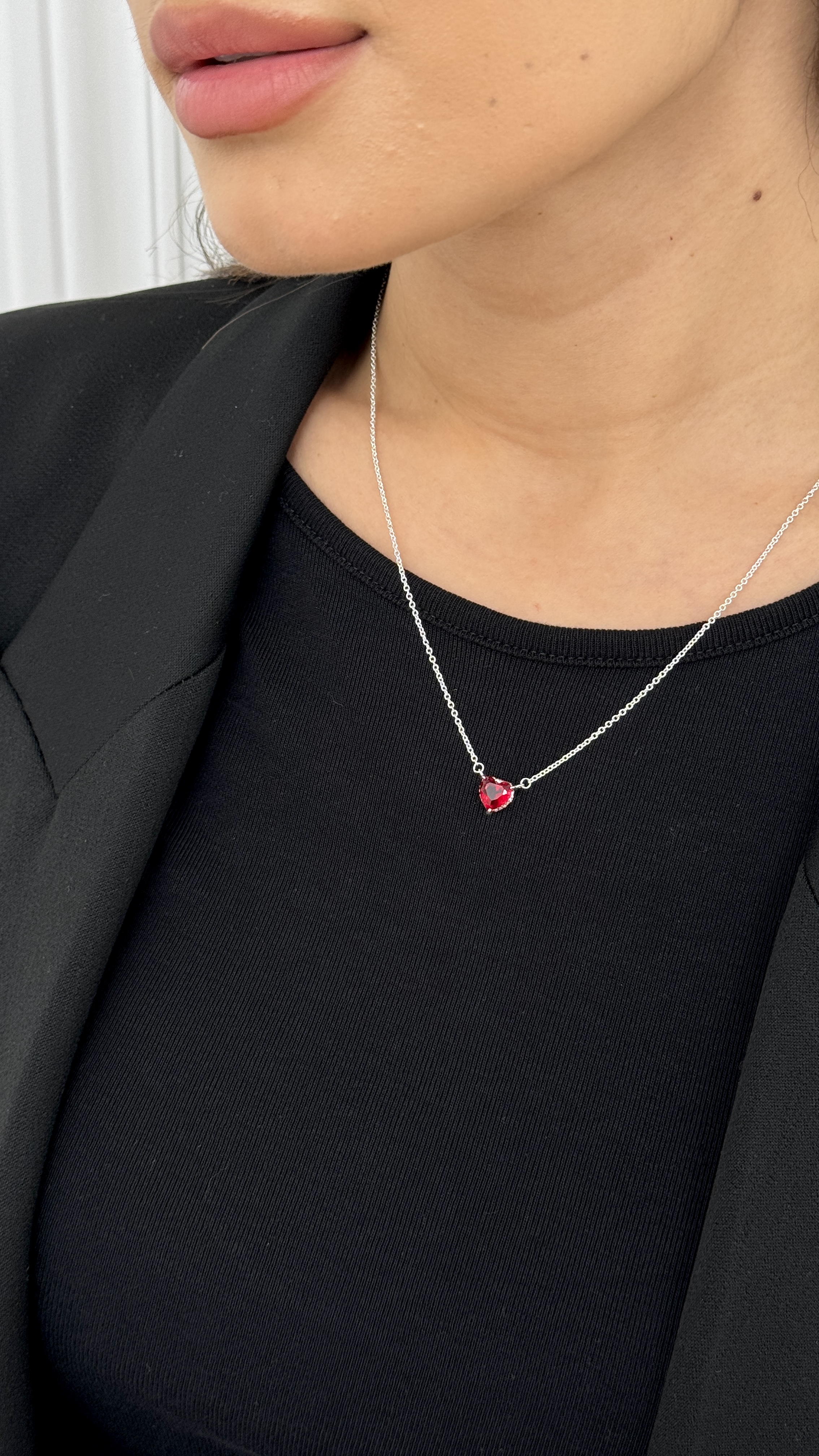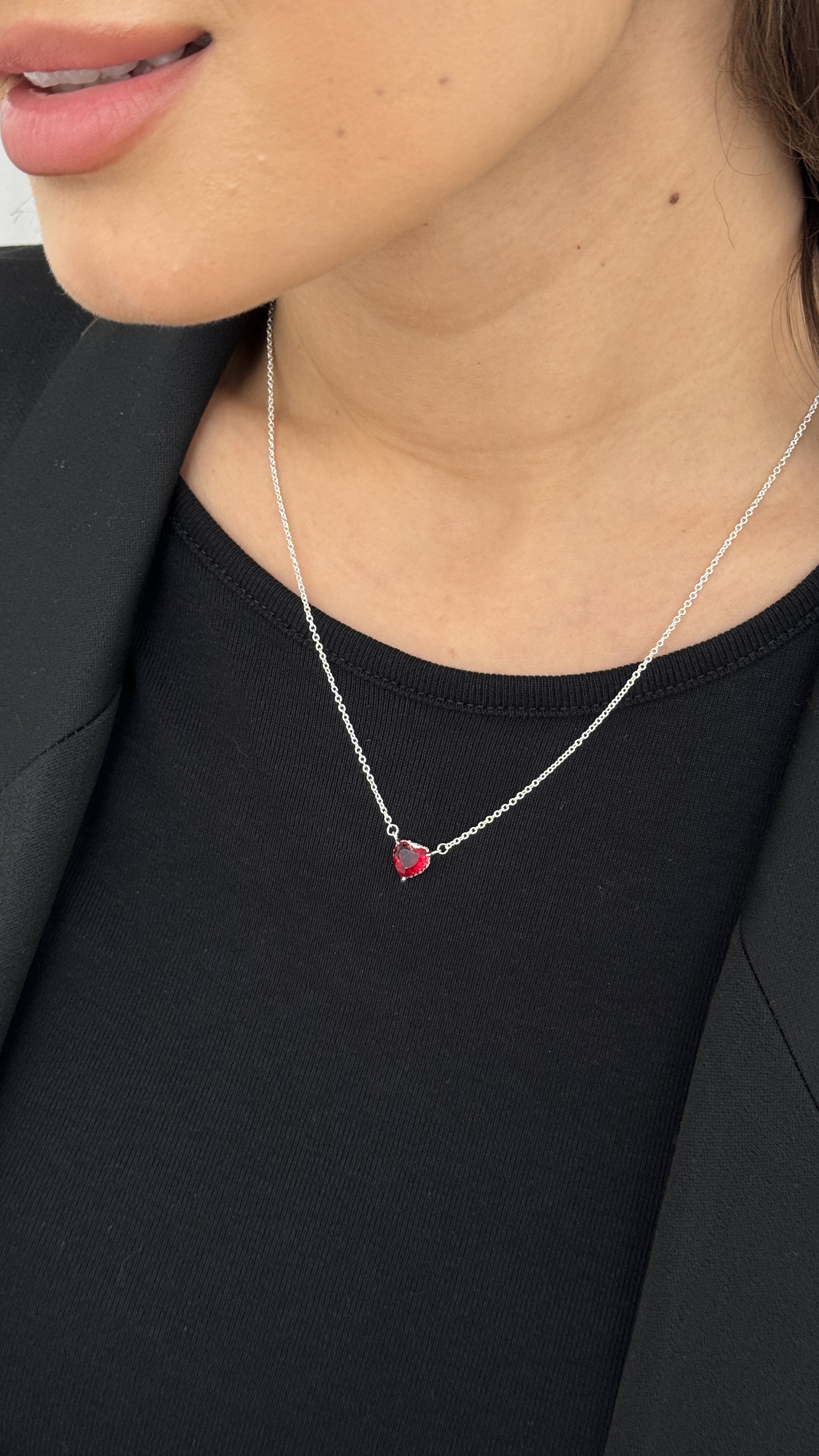 Кольє «Червона пристрасть» – це витончена прикраса для тих, хто любить говорити про почуття без слів. Ніжний ланцюжок із медсплаву зі срібним покриттям красиво підкреслює лінію шиї, а яскравий підвіс-сердечко з насиченого червоного каменю одразу привертає увагу. Блискучі фіаніти додають прикрасі сяйва, завдяки чому кольє ефектно виглядає як у денних, так і у вечірніх образах.
